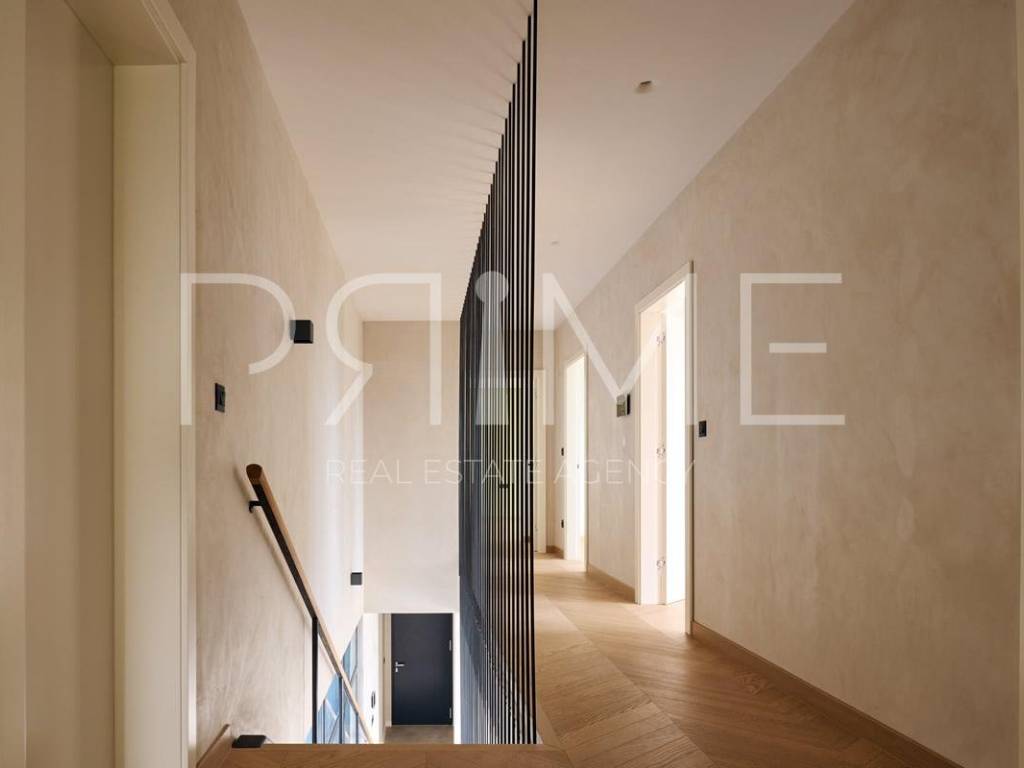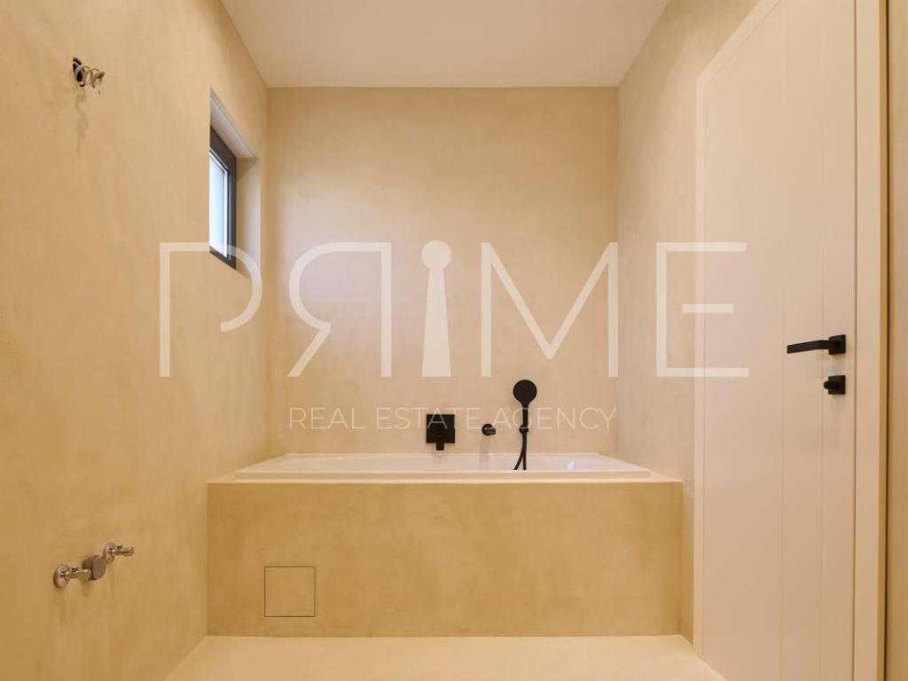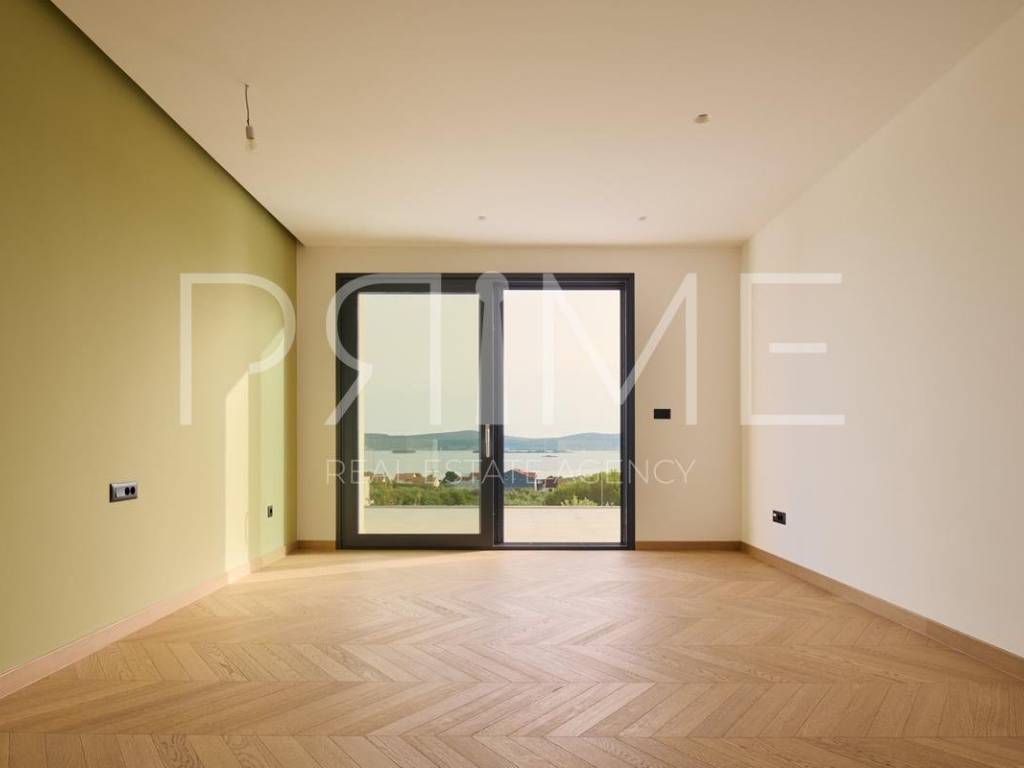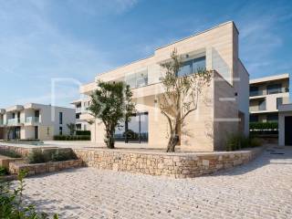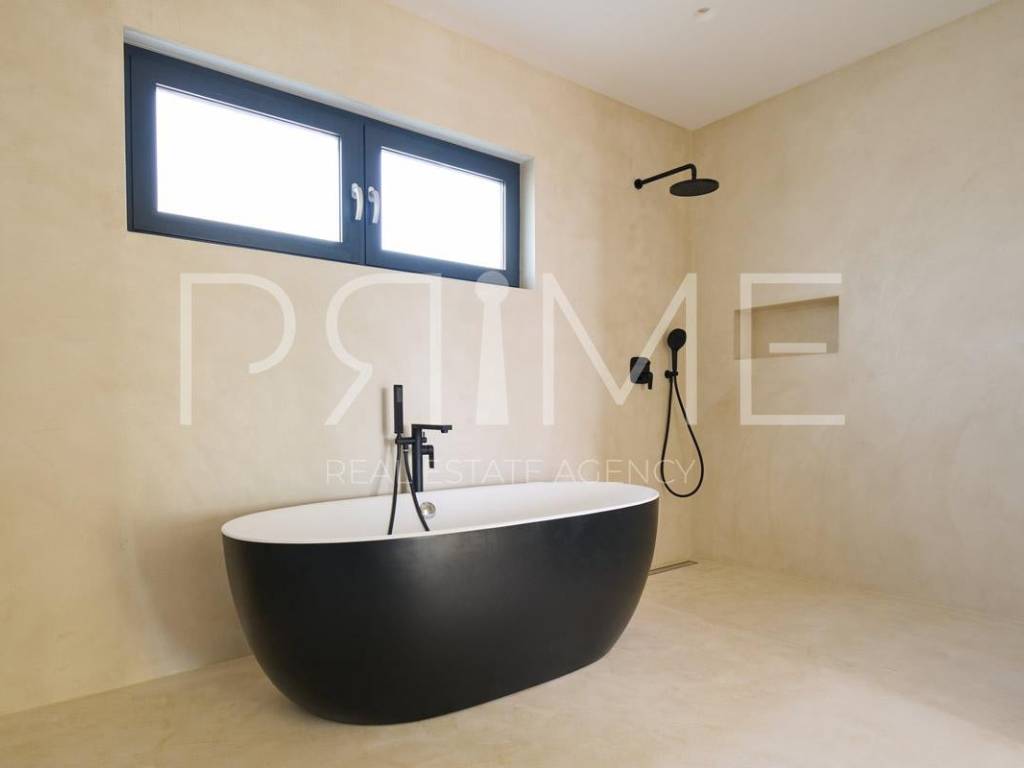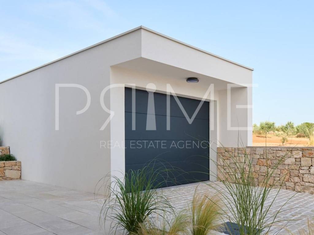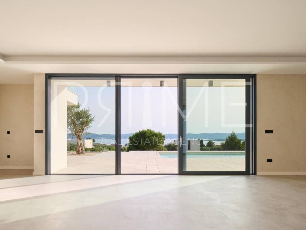 Moderna vila površine 263 m2 nalazi se na parceli površine 786 m2. Udaljenost od mora  je 550 metara. Sastoji se od dvije etaže: prizemlja i prvog kata. U prizemlju se nalaze kuhinja, blagovaona,dnevni boravak, wc, sauna, fitness, strojarnica, spremište i garaža dok se na prvome katu se nalaze 4 spavaće sobe, tri kupaonice, walk in ormar, praonica, terasa i tri balkona. U izgradnji i opremanju su korišteni isključivo najkvalitetniji materijali od renomiranih proizvođača. Vila je građena da zadovolji standarde 5* (u slučaju da se budući vlasnik želi baviti turizmom). Potpuno je klimatizirana. Ima vanjski grijani bazen površine 52 m2.  Iz vile se pruža prekrasan pogled na more . Vlasnik je pravna osoba u sustavu PDV-a tako da je kupac oslobođen poreza. Više informacija na upit!!