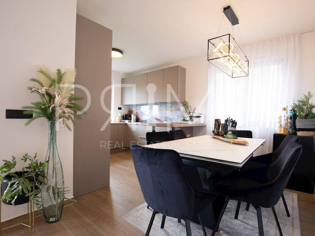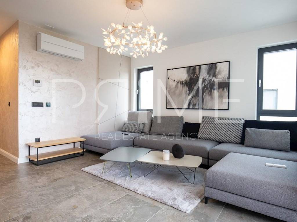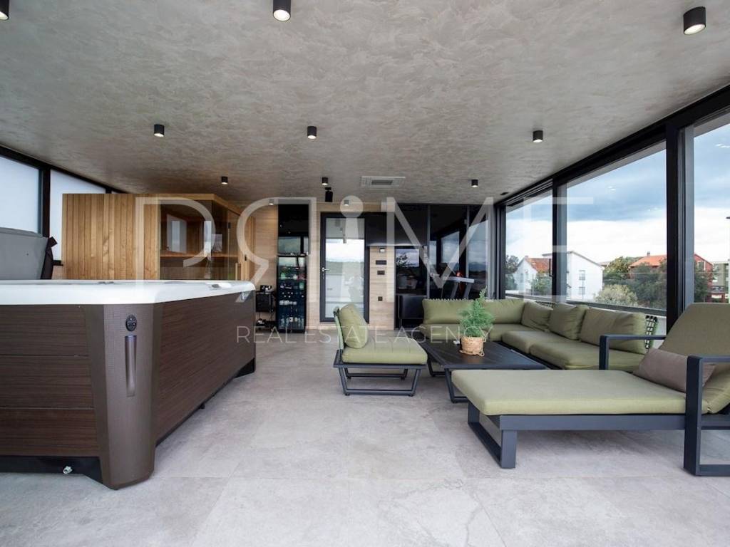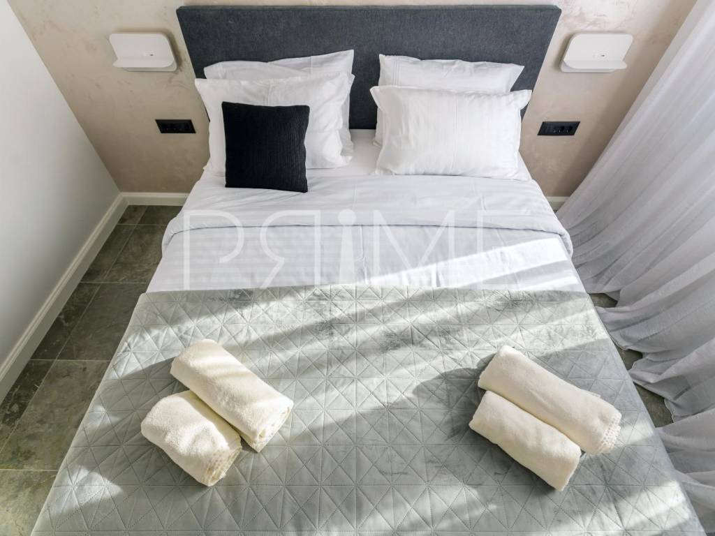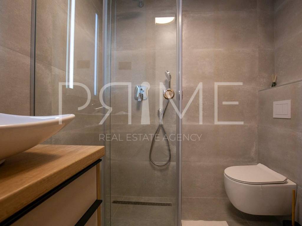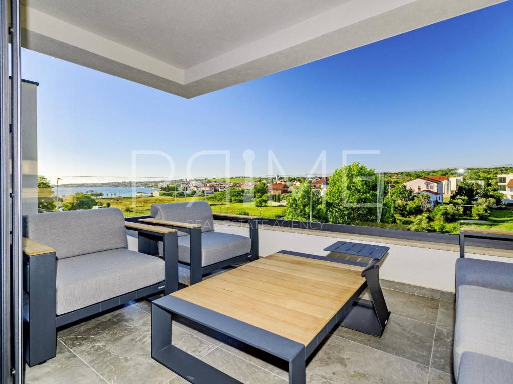 Novoizgrađena zgrada površine 414 m2 sastoji se od 7 stambenih jedinica. Nalazi se na odličnoj lokaciji udaljenoj od mora i prekrasne plaže 150 metara. U prizemlju se nalaze četiri stambene jedinice odnosno jedan dvosoban stan i tri jednosobna stana (garsonijere). Svi stanovi u prizemlju imaju izlaz na dvorište koje je potpuno uređeno i djelomično natkriveno pergolama. Na prvome, drugom i trećem katu se nalaze trosobni stanovi svaki korisne površine 90 m2 ( tlocrtne površine 114 m2). U izgradnji i opremanju su korišteni isključivo najkvalitetniji materijali od renomiranih proizvođača. Zgrada se prodaje se kompletno namještena i opremljena. Svi stanovi su dizajnerski namješteni i opremljeni i nisu korišteni. U potpunosti je klimatizirana (svaka soba ima svoju jedinicu), podno grijanje kroz cijelu zgradu...Na krovnoj terasi se nalazi wellness s saunom jacuzzijem, kupaonicom, prostorom za druženje....