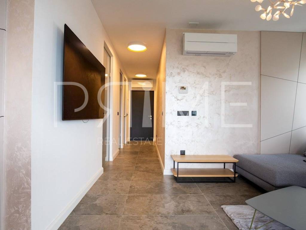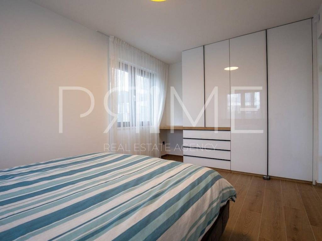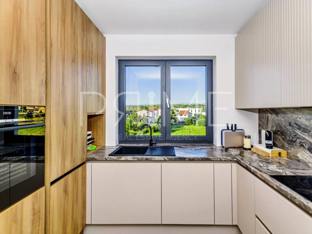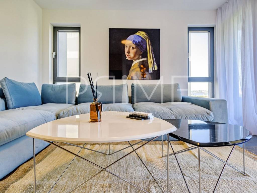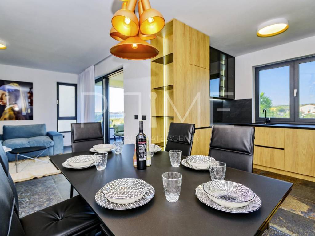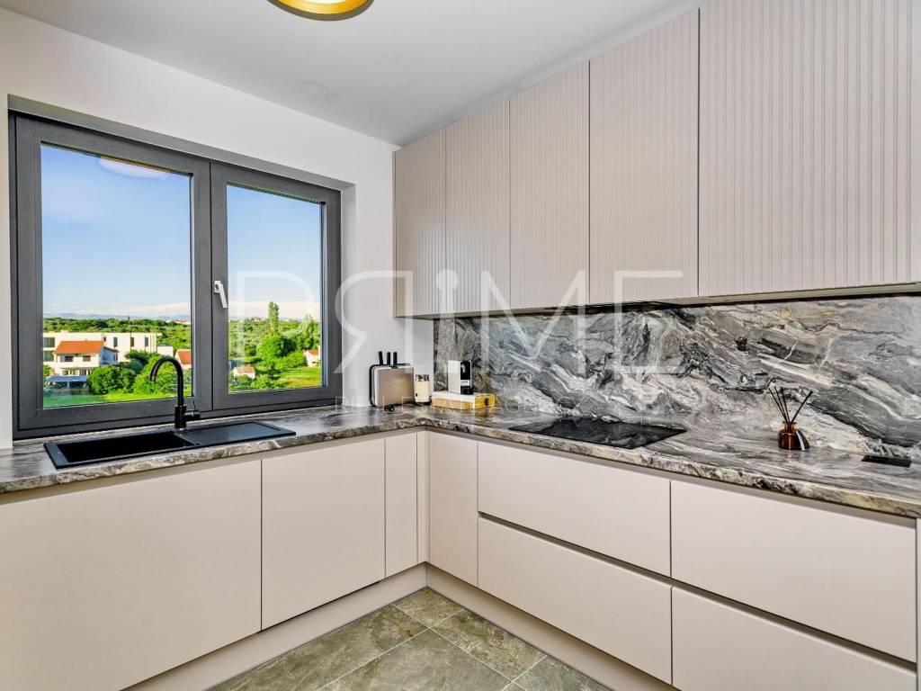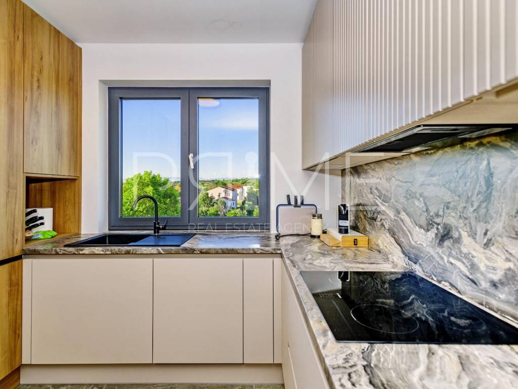 Novoizgrađena zgrada površine 414 m2 sastoji se od 7 stambenih jedinica. Nalazi se na odličnoj lokaciji udaljenoj od mora i prekrasne plaže 150 metara. U prizemlju se nalaze četiri stambene jedinice odnosno jedan dvosoban stan i tri jednosobna stana (garsonijere). Svi stanovi u prizemlju imaju izlaz na dvorište koje je potpuno uređeno i djelomično natkriveno pergolama. Na prvome, drugom i trećem katu se nalaze trosobni stanovi svaki korisne površine 90 m2 ( tlocrtne površine 114 m2). U izgradnji i opremanju su korišteni isključivo najkvalitetniji materijali od renomiranih proizvođača. Zgrada se prodaje se kompletno namještena i opremljena. Svi stanovi su dizajnerski namješteni i opremljeni i nisu korišteni. U potpunosti je klimatizirana (svaka soba ima svoju jedinicu), podno grijanje kroz cijelu zgradu...Na krovnoj terasi se nalazi wellness s saunom jacuzzijem, kupaonicom, prostorom za druženje....