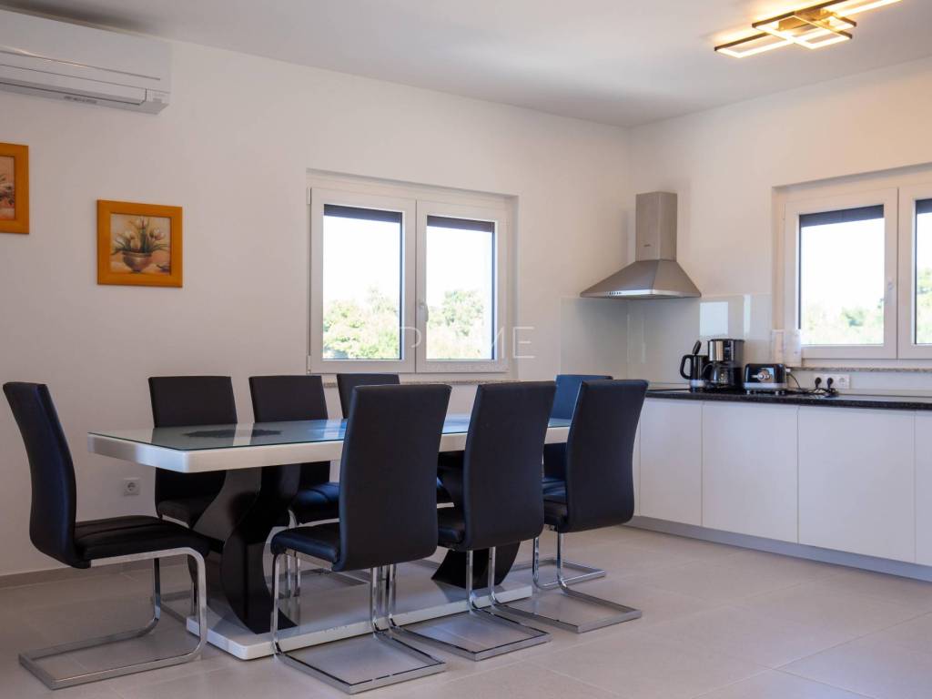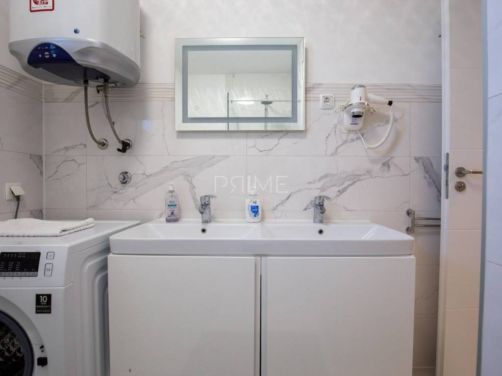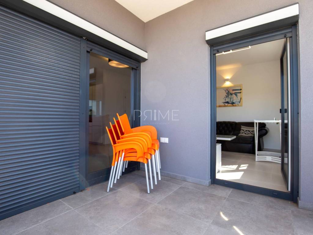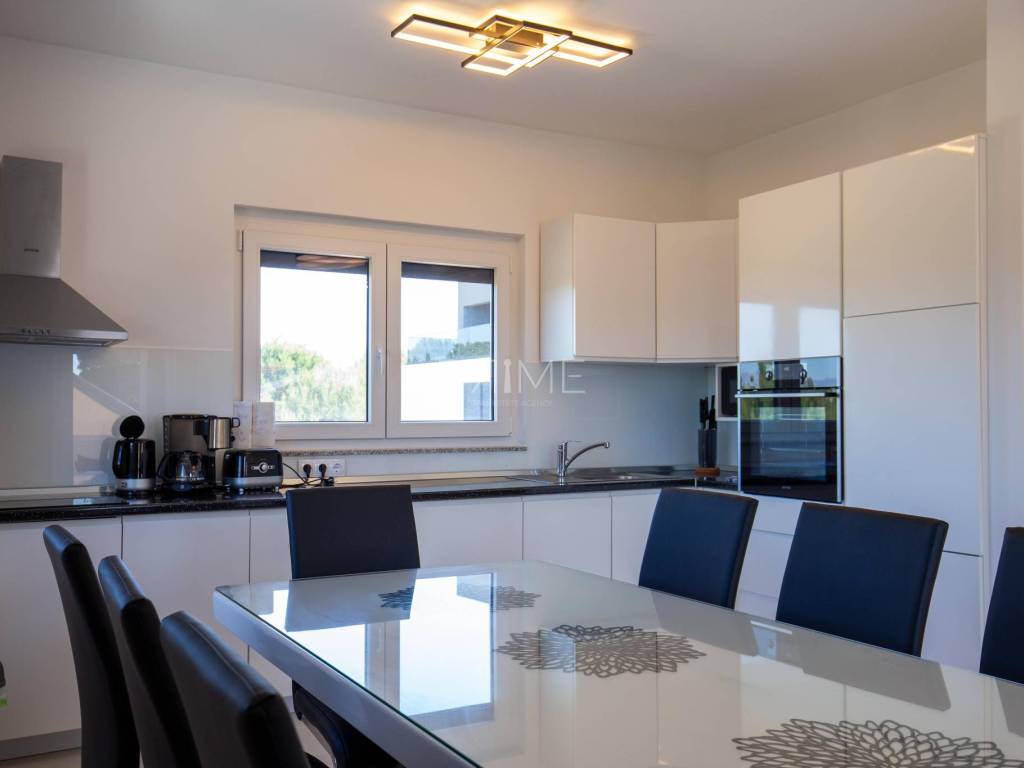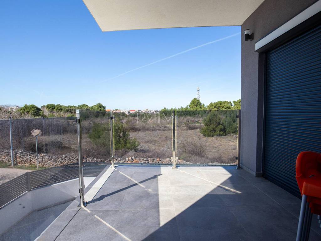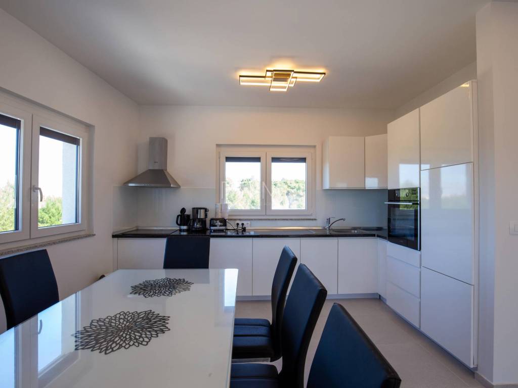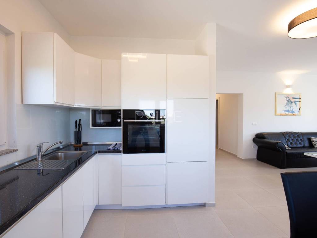 Stan površine 85,7 m2 sastoji se od kuhinje, blagovaone, dnevnog boravka, kupaone, wc-a, tri spavaće sobe, hodnika i natkrivene terase. Pripadci stanu su dva vanjska parkirna mjesta. Stan se prodaje kompletno namješten i opremljen kao na slikama. Nalazi se na mirnoj lokaciji u blizini centra mjesta, udaljenost od mora je nekih 500 metara. Zgrada se sastoji od 4 stambene jedinice. Više informacija na upit!