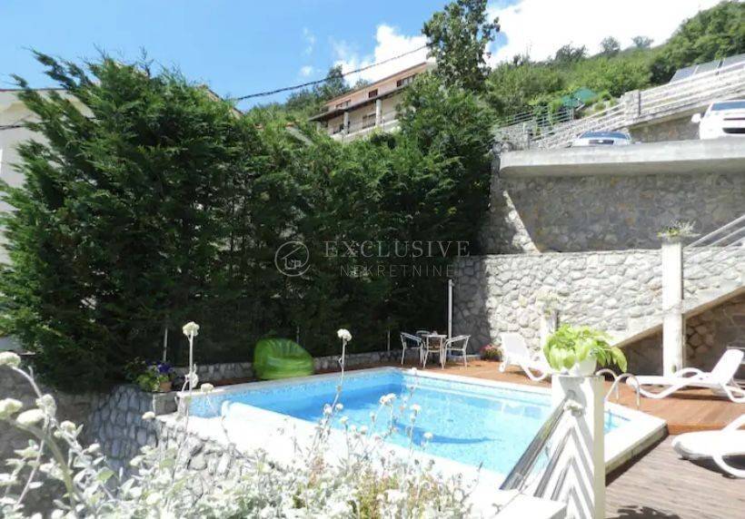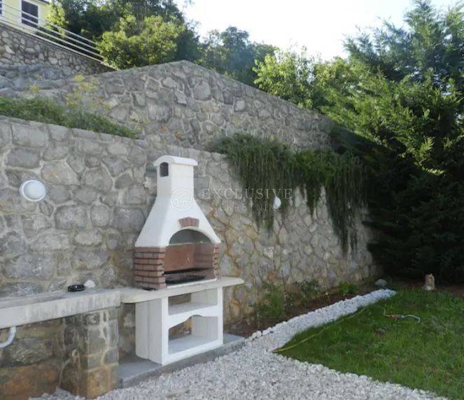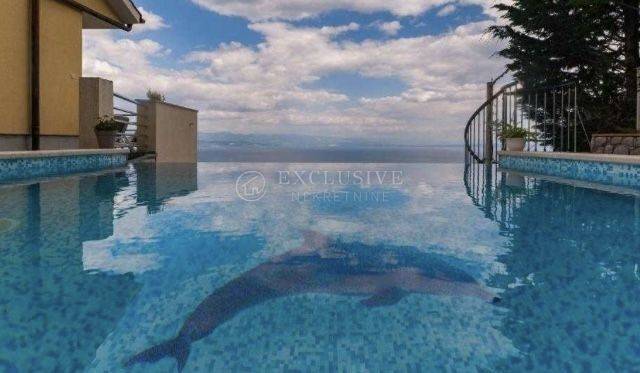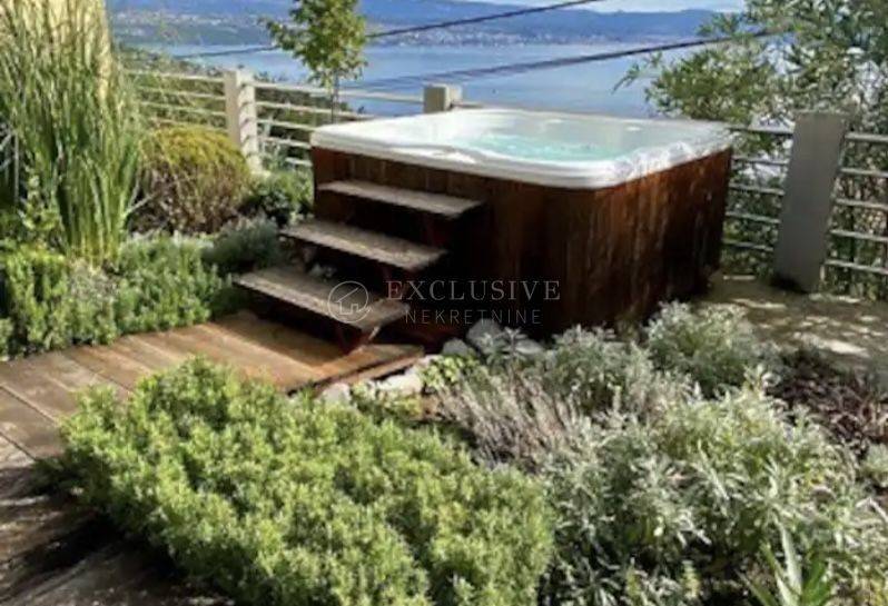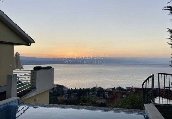 Ein wunderschönes Einfamilienhaus in TOP-Lage mit einer Fläche von 380m2 mit drei separaten Wohneinheiten und einem angelegten Garten in Lovran. Im Erdgeschoss befindet sich eine 2-Zimmer-Wohnung mit zwei Badezimmern, einem Whirlpool, einer schönen Terrasse und zwei Parkplätzen. Im ersten Stock befindet sich eine 3-Zimmer-Wohnung mit zwei Terrassen mit Grill und Swimmingpool, zwei Parkplätzen und einer Taverne. Im zweiten Stock befindet sich eine 2-Zimmer-Wohnung mit Kamin, Balkon und Terrasse; Zugehörig zu zwei Stellplätzen. Das Haus bietet einen wunderschönen Blick auf die gesamte Kvarner-Bucht.