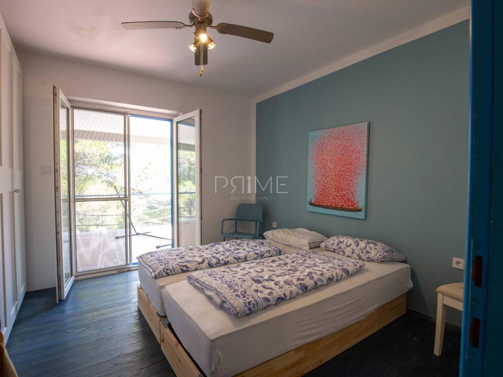 Na izuzetnoj lokaciji na otoku Ugljanu, u samom prvom redu do mora, smjestila se ova samostojeća kuća ukupne površine 190 m², okružena netaknutom prirodom i borovom šumom, koja novom vlasniku jamči potpunu privatnost i mir.