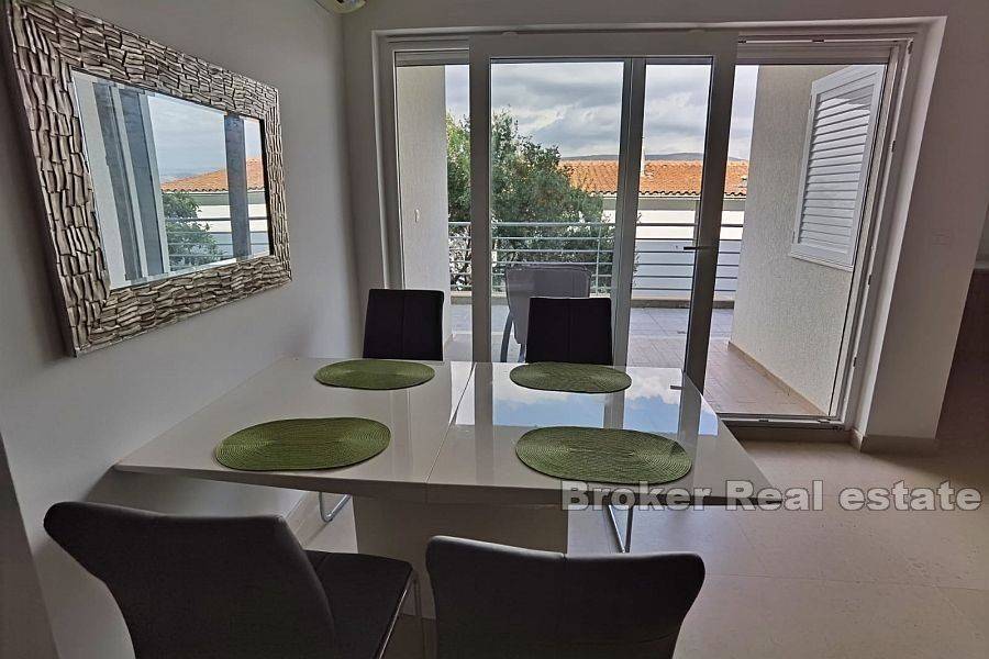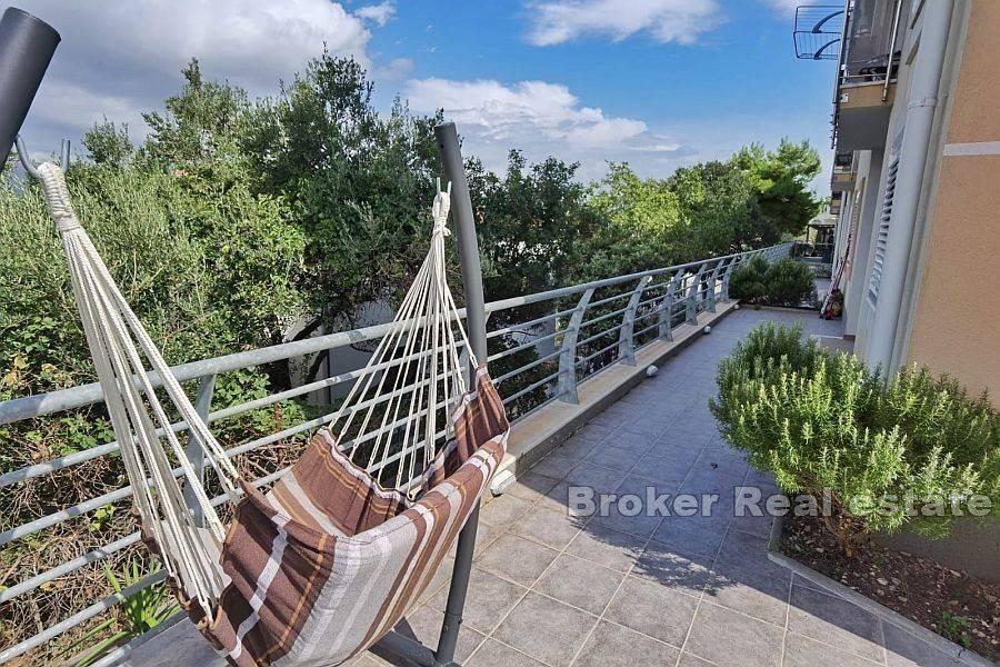 Geräumige Zweizimmerwohnung zur Langzeitmiete, Gesamtwohnfläche 63 m2 und Terrasse 42 m2 mit Meerblick, im Erdgeschoss in ruhiger Lage in Okrug Donji gelegen. Die Wohnung ist komplett möbliert und zur langfristigen Belegung bereit. Die Wohnung ist offen gestaltet und besteht aus zwei Zimmern, einer geräumigen Küche mit Esszimmer und Wohnzimmer sowie einem Badezimmer. In einer ruhigen Straße, in einer Fußgängerzone gelegen, bietet die Wohnung die Möglichkeit eines hochwertigen und angenehmen Aufenthalts. Die Zufahrt mit dem Auto und die Möglichkeit zum Parken sind nicht weit von der Wohnung entfernt, ebenso wie alle weiteren Einrichtungen.