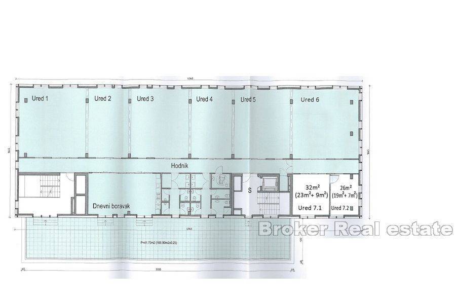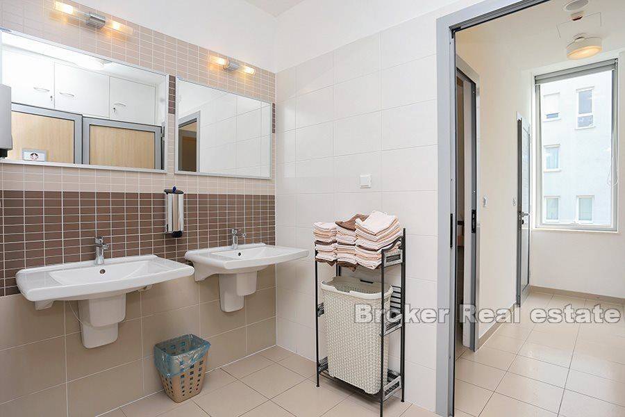 Vermietung mehrerer Geschäfts- und Büroräume in einem Bürogebäude in Split, Poljička cesta. Die Büroräume verfügen über eine Klimaanlage und eine Lüftungsanlage. Eine Brandmeldeanlage wurde installiert. Es wurden Installationen durchgeführt, um das Büro an die Videoüberwachung anzuschließen. Die Böden sind mit Parkett ausgelegt. Netzwerkkabel und Spannungskabel wurden durch die Böden verlegt. Jeder Arbeitsplatz verfügt über einen Computeranschluss, ein IP-Telefon und zwei Stromanschlüsse. Alle Bereiche rund um das Gebäude und innerhalb des Gebäudes (mit Ausnahme der Fachbüros) sind videoüberwacht. Die Zutrittskontrolle wird mit digitalen Schlüsseln gelöst. Alle Netzwerkkabel werden zum Rackschrank geführt, der mit dem Serverraum im Erdgeschoss verbunden ist. Optiker von HT, A1, Optime Telekom und B.net wurden in den Serverraum geholt, sodass der Nutzer nur noch den Anbieter auswählen muss, bei dem er den Vertrag abschließt. Gemeinschaftsräume von Geschäftsräumen sind: Küche mit Wohnzimmer (47,20 m2), belüfteter geschlossener Raucherbereich (2,50 m2), Badezimmer (männlich und weiblich getrennt, mit insgesamt 8 Kabinen) (44,60 m2), Terrasse (166,80 m2 ), Unterhaltungsbereich (Tischtennis, Tischfußball, Brettspiele …) (10 m2). Die Preise der Geschäftsräume sind auf Monatsbasis angegeben und enthalten keine Mehrwertsteuer: * Die Preise beinhalten keine Stromkosten und Nebenkosten * Der Preis für das Büro beinhaltet die Kosten für Wasser und die Kosten für die Reinigung des Büros und der Gemeinschaftsräume Sofort verfügbare Plätze: – 1. Obergeschoss, Büro 4: 64,10 m² = 46,40 m² + 17,70 m² -2.000,00 EUR (31,20 EUR/m²) + MwSt. – 1. Obergeschoss, Büro 7: 58,00 m² = 41,80 m² + 16,20 m² -1.900,00 EUR (32,76 EUR/m²) + MwSt. und eine größere Anzahl verfügbarer Parkplätze zu einer monatlichen Miete von 140,00 EUR + MwSt.