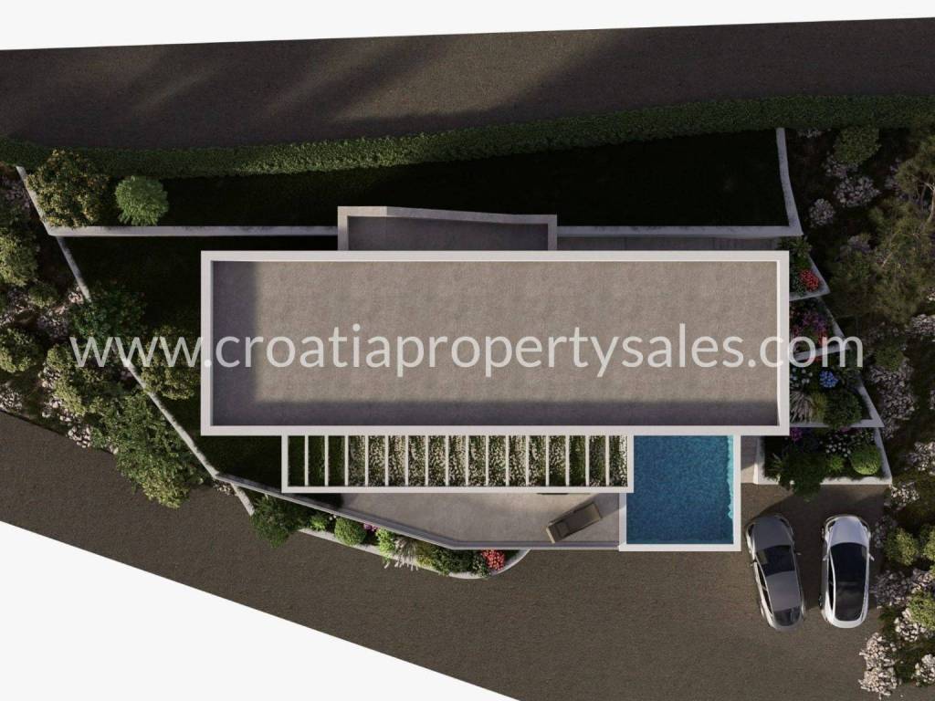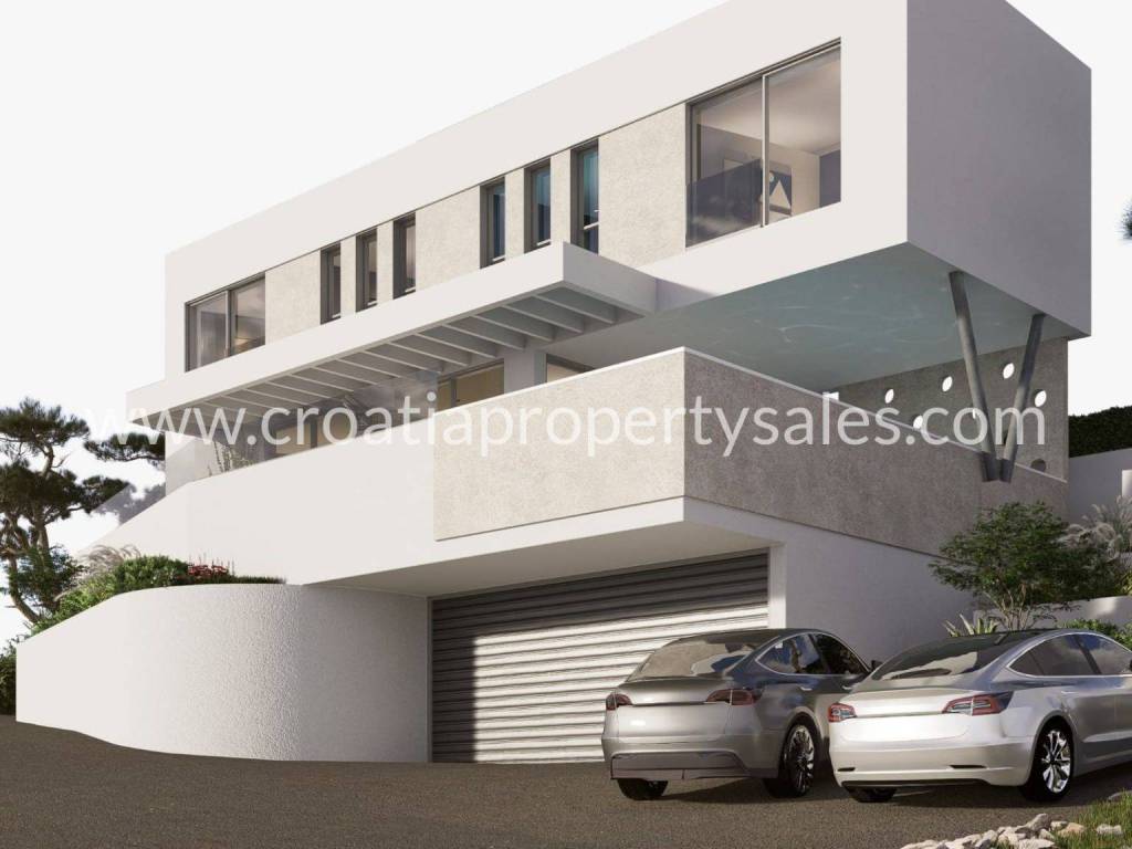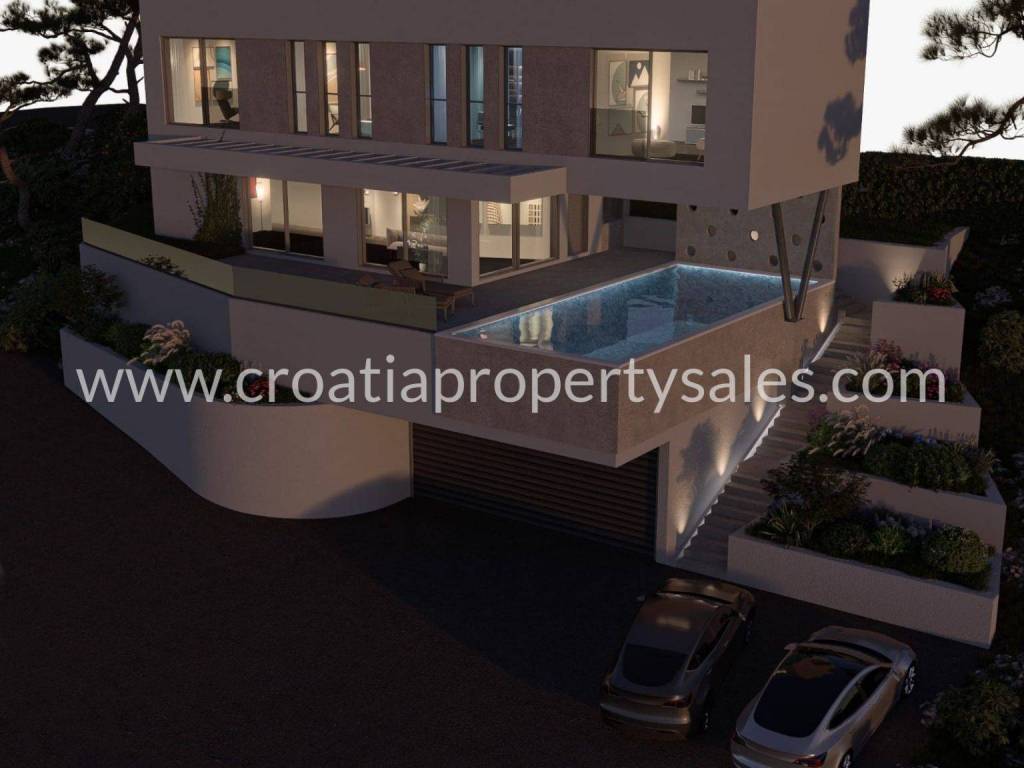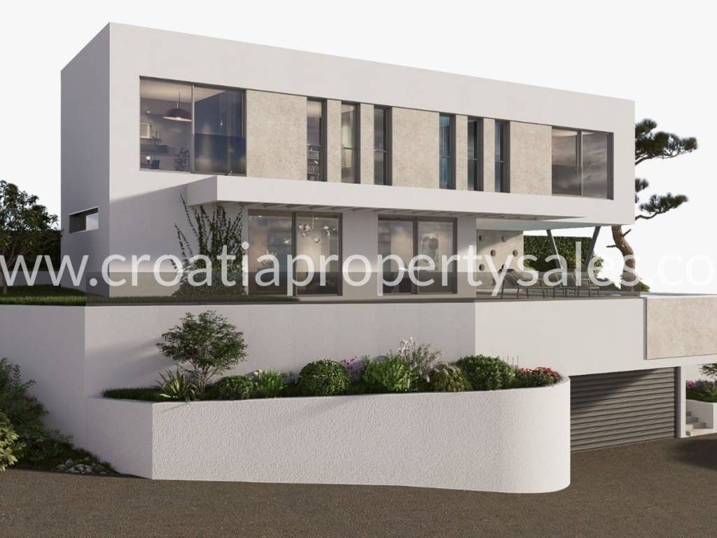 Eine moderne, luxuriöse Villa im Bau in der Nähe von Omiš.Der Bau dieser modernen Villa ist auf einem Grundstück von 500 m2 geplant.Im Erdgeschoss der Villa wird eine Garage mit Maschinenraum untergebracht. Von der Garage führt eine Treppe in die 1. Etage, wo sich ein Gäste-WC, eine Speisekammer, eine Küche, ein Esszimmer und ein offenes Wohnzimmer mit großen Schiebewänden befinden, die den Blick auf das Meer und die Inseln freigeben und eine direkte Verbindung zwischen Außen- und Innenräumen ermöglichen.Auf der großen Außenterrasse gibt es einen Swimmingpool mit Liegewiese und einen überdachten Bereich zum Essen und geselligen Beisammensein.Im ersten Stock befinden sich 4 Zimmer mit angeschlossenen Badezimmern. Das Innere der Villa ist so gestaltet, dass es seinen Nutzern maximalen Komfort und Luxus bietet.Diese Immobilie stellt eine seltene Gelegenheit für alle dar, die Luxus und den mediterranen Lebensstil genießen möchten.Es ist 450 m vom Meer und einem schönen Kiesstrand entfernt.