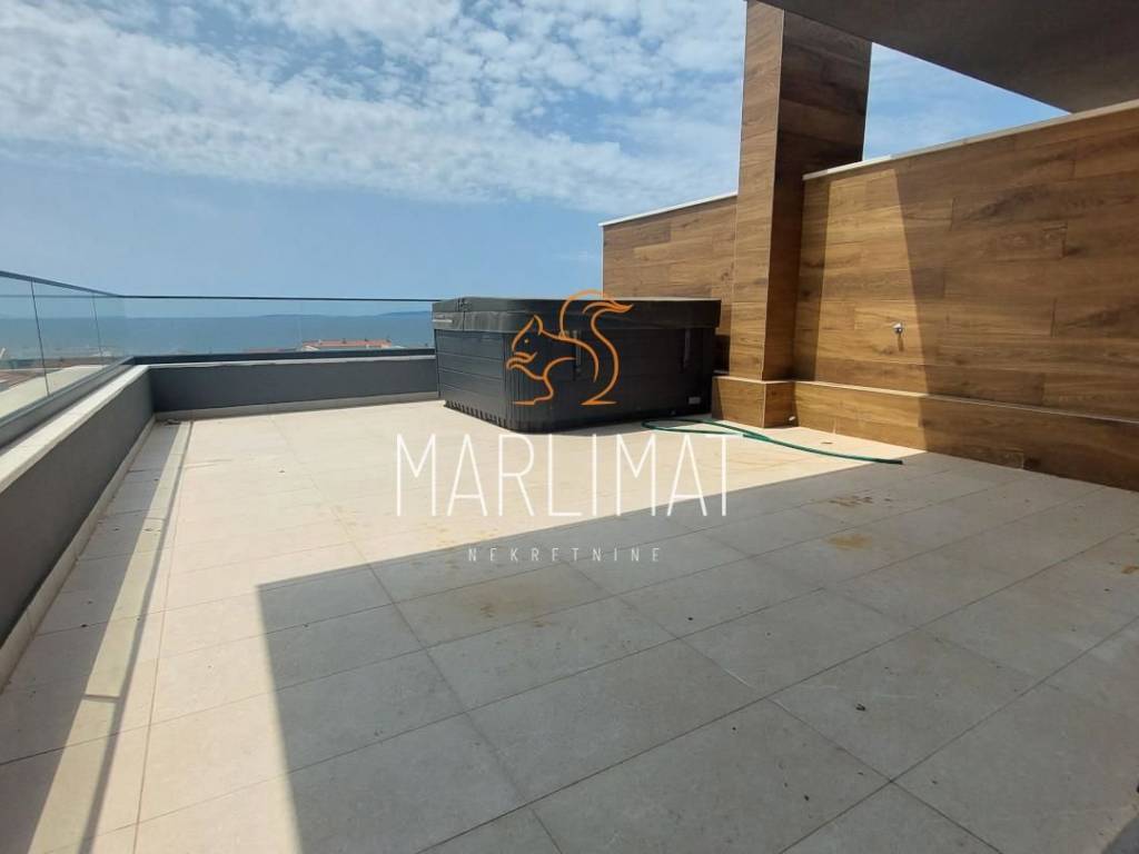 Apartman se nalazi na 1.katu i potkrovlju apartmanske zgrade sa pripadajućim jacuzzijem na terasi te dva parkirna mjesta. Iz apartmana se pruža prekrasan pogled na more!