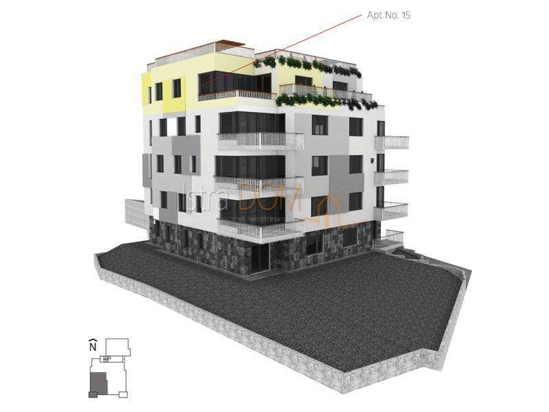 Fenster und Hebeschiebetüren bieten nicht nur eine hervorragende Isolierung, sondern sind auch resistent gegen Meersalz, was besonders für Küstengebiete wichtig ist. Das farbige venezianische Mosaik im zentralen Eingang und in den Fluren verleiht dem Raum ein luxuriöses Aussehen, während der natürliche Kastavski-Sivac-Stein im Treppenhaus und in den Zwischengeschossen für eine natürliche und warme Atmosphäre sorgt.