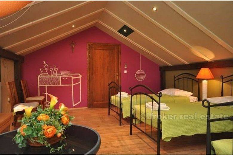 Die Villa befindet sich in der Kastela, einer kleinen Stadt zwischen Split und Trogir, in der Nähe des Strandes, des Flughafens und anderer Einrichtungen. Die Gesamtkapazität beträgt 35 Betten. Villa ist eine gut etablierte Anlage, die seit 2003 erfolgreich tätig ist In der Natur besteht Objekt aus Rezeption, Restaurant mit 50 Sitzplätzen, 9 Doppelzimmer (die beiden können ein zusätzliches drittes Bett unterbringen) und ein Vierbettzimmer. Darüber hinaus bieten sie auch 3-Zimmer-Suiten mit Mini-Küchen-Block. Alle Zimmer sind klimatisiert, mit Sat-TV und Internetanschluss. Warmwasserbereitung wird durch Solaranlage gelöst. Villa kann das ganze Jahr über arbeiten, da es eingeführt wurde und Heizung. Die Anlage verfügt über eine eigene BIO-Grube mit ausreichender Kapazität. Alle Zimmer sind modern und sehr geschmackvoll eingerichtet und bieten einen atemberaubenden Blick auf das Meer. Villa Restaurant befindet sich innerhalb des Gebäudes und bietet seinen Gästen einen kompletten Service. Die Anlage befindet sich ca. 30 m über der Straße und verfügt über einen eigenen Parkplatz für 15 Autos. Im Zentrum von Kastela, in der Nähe des Meeres, können Sie die Renaissance-Burg besuchen. HINWEIS: Dieser Preis gilt nur bei der Übernahme von Aktien oder der gesamten Gesellschaft. Ansonsten noch 25% MwSt. Und Grundsteuer 3% (an Land). Ernsthafte Kunden schließen Projektgeschäft ein.
