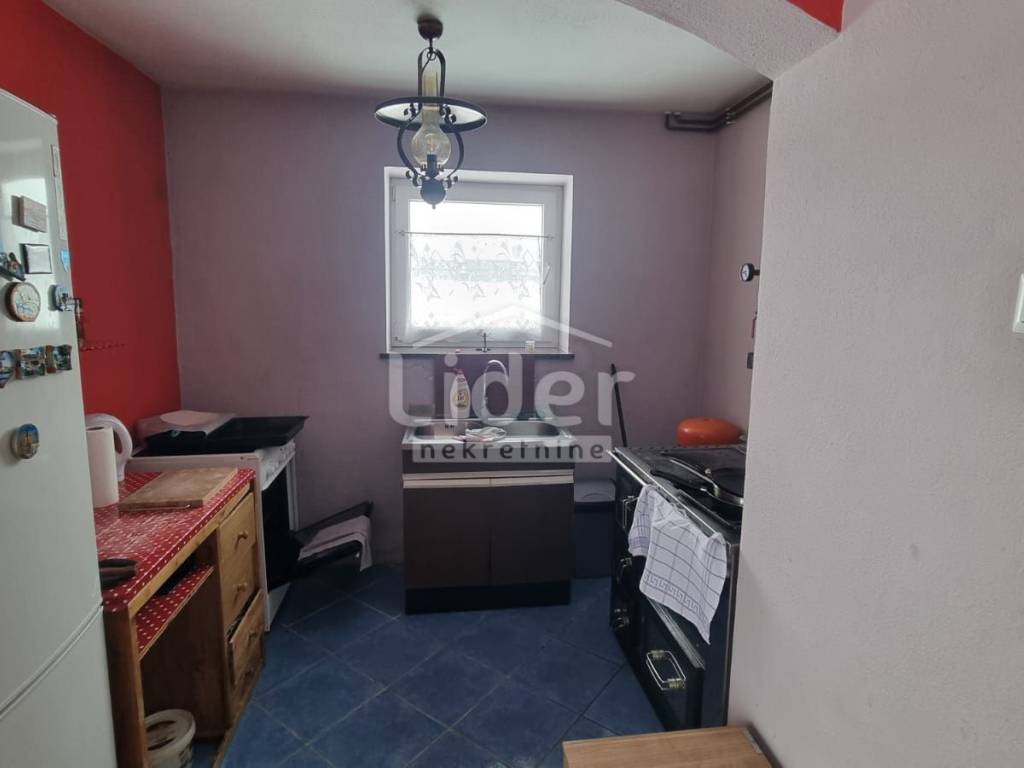 Doppelhaushälfte zu verkaufen, Delnice. Grundriss Fläche von 58 m2, Wohnfläche von ca. 100 m2, Erdgeschoss plus erstes Obergeschoss und Nebengebäude auf einem Grundstück von 378 m2. Vom Erdgeschoss, wo sich eine Küche mit Esszimmer, ein Wohnzimmer und ein Badezimmer befinden, gibt es einen Ausgang zum Hof. Im Obergeschoss befinden sich drei Schlafzimmer und eine Toilette. Auf dem Dachboden, Dachboden. Das Haus ist komplett renoviert - Betonplatten, Bodenisolierung, Parkett und Plattenparkett, Doppelwände, Wärmeputz an den Außenseiten, neues Dach mit Aluminiumabdeckung, neue PVC-Tischlerei, neuer Strom, Wasser, Abfluss mit der Stadt, Zentralheizung auf Holz. Das Haus ist bewohnbar und erfordert den Bau einer Fassade.