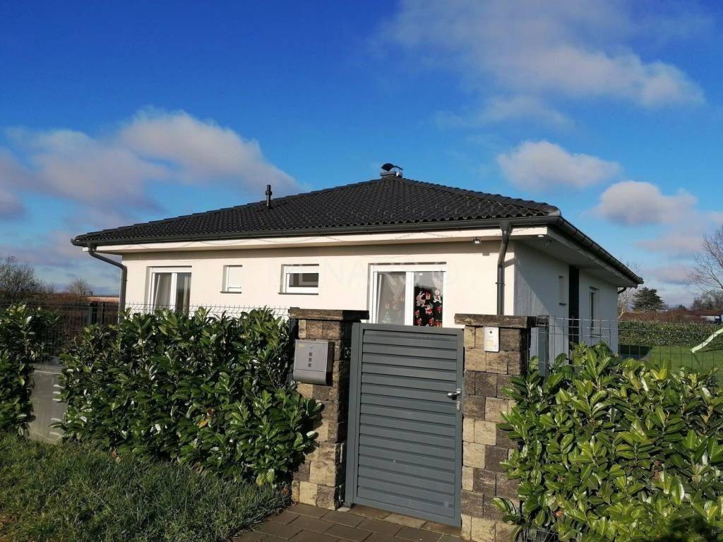 Prodaje se moderna obiteljska montažna kuća, izgrađena 2018. godine, površine 146 m2, sa dvorištem od 498 m2, na parceli od ukupno 694 m2.