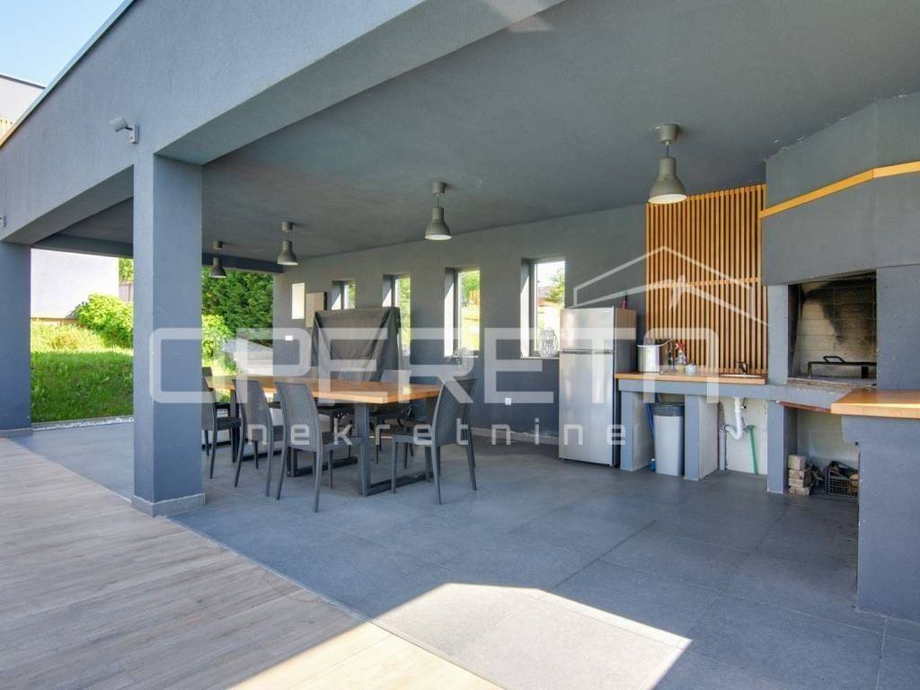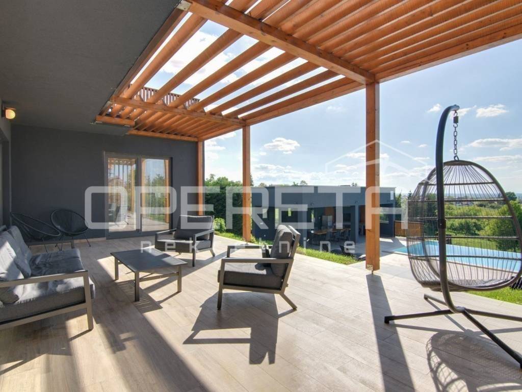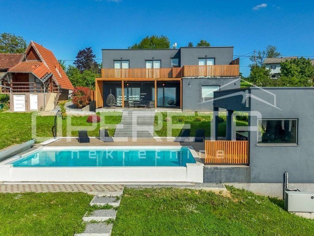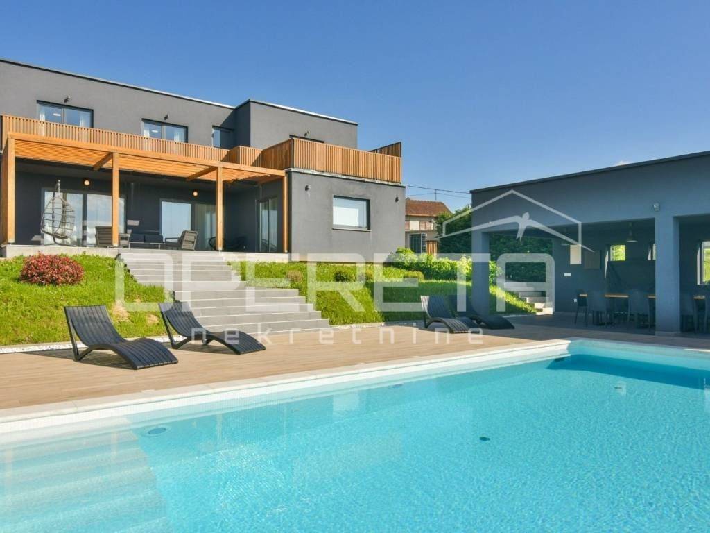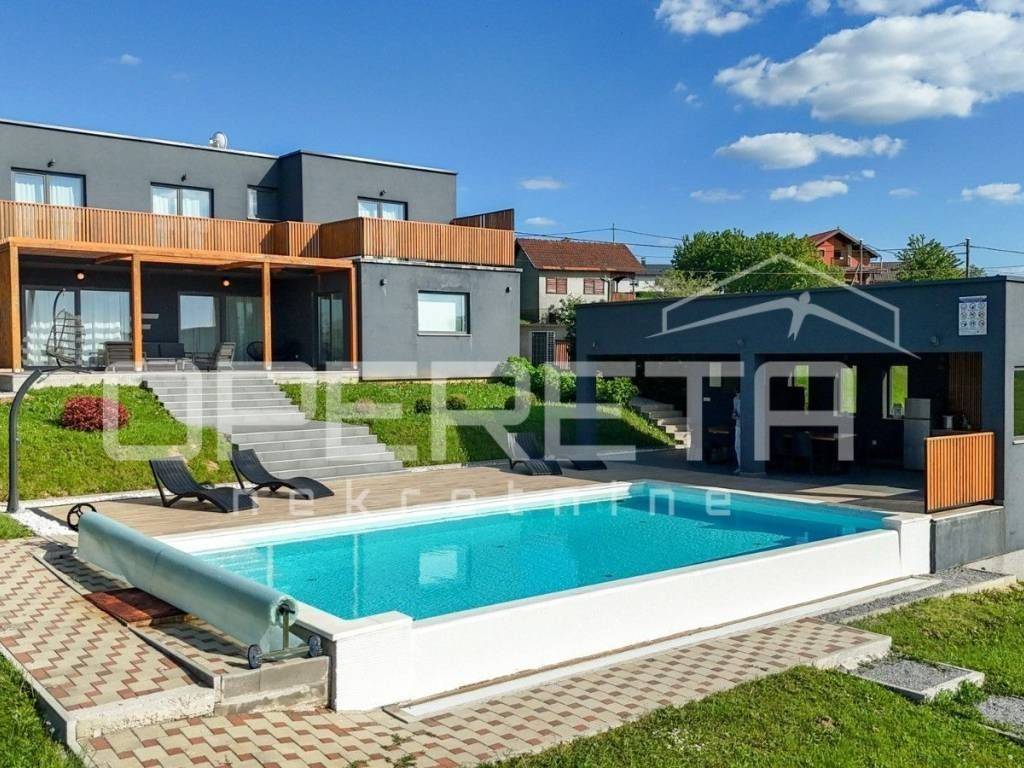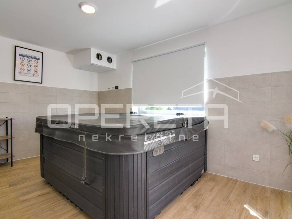 Kuća je idealna za turistički najam, organizaciju proslava, eventa, djevojačkih i momačkih večeri, ali zbog izvrsnog rasporeda može biti i obiteljska kuća na par minuta pješice od bitnijih sadržaja za život(dućani, vrtić...). Prostrani interijer moderno uređen, hortikulturno uređeno dvorište sa otvorenim veeelikim pogledom u daljinu, pruža udobnost i eleganciju, vanjski prostor s bazenom poziva na opuštanje i uživanje u sunčanim danima stvarajući nezaboravne uspomene. PREPORUČUJEMO!!!