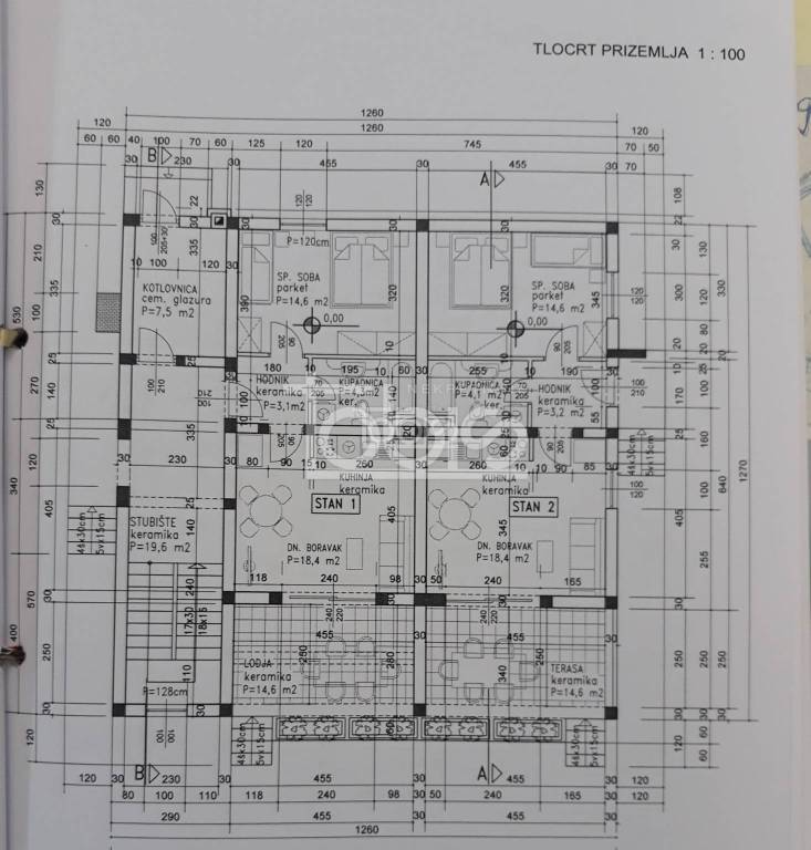 - GROUND FLOOR: Boiler room and two one-room apartments. Both apartments consist of a bedroom, kitchen, living room, bathroom and terrace. In the boiler room there is a central boiler with a capacity of 300 l - a Gorenje heat pump, a laundry room and a summer kitchen.