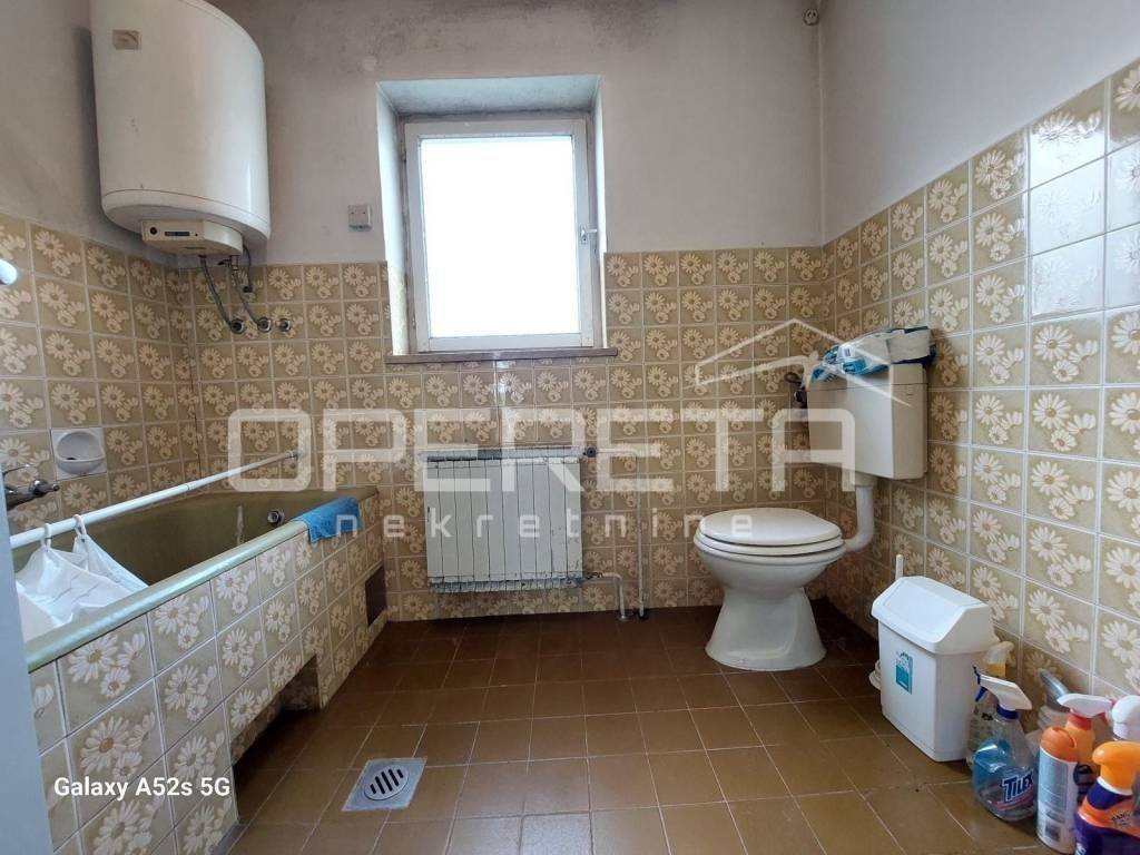 Sastoji se od ulaznog hodnika,kupaonice sa wc-om, izbe, kuhinje sa blagovaonicom, dnevnog boravka i dvije spavaće sobe sa izlazom na blakon. U prizemlju kuće se nalazi garaža. U dvorištu se nalazi i pomoćna gospodarska zgrada površine 134m2. Idealna kuća za miran i lagodan život u netaknutoj prirodi. Svi potrebni sadržaji nalaze se u blizini.
