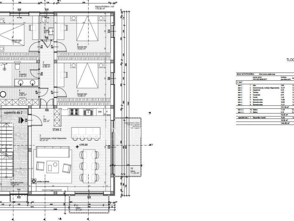 Istrien, Umgebung von Poreč – Großzügige Wohnung im 1. Stock mit zwei TerrassenIn einer ruhigen und attraktiven Wohngegend in der Nähe von Poreč, nur wenige Gehminuten vom Meer entfernt, befindet sich diese moderne Wohnung im ersten Stock – ideal für das Familienleben oder als luxuriöse Investition für Urlaub und Vermietung. Die Wohnung ist Teil eines hochwertigen Neubaus in einer der begehrtesten Lagen der Region.Mit einer Gesamtfläche von 115,27 m² wurde die Wohnung so konzipiert, dass sie maximalen Komfort und Funktionalität bietet. Der Eingangsbereich führt in ein helles Wohnzimmer mit Küche und Essbereich im offenen Konzept. Große Hebeschiebetüren öffnen sich zu zwei großzügigen Terrassen, die viel Tageslicht einlassen und idealen Außenbereich zum Entspannen bieten.Die Wohnung besteht aus drei komfortablen Schlafzimmern, einem modern ausgestatteten Badezimmer, einem zusätzlichen Gäste-WC und einem praktischen Abstellraum mit Waschmöglichkeit. Das Wohnzimmer, das Bad und das WC sind mit Fußbodenheizung ausgestattet, Klimaanlagen in allen Räumen sorgen auch im Sommer für angenehmes Raumklima.Zwei private Parkplätze sind im Preis inbegriffen.Die Wohnung wird im hochwertigen Rohbau verkauft, was dem zukünftigen Eigentümer die Möglichkeit gibt, das Interieur vollständig individuell zu gestalten – von der Auswahl der Fliesen und Böden bis hin zur möglichen Änderung des Grundrisses.✅ Nähe zum Meer und allen Annehmlichkeiten✅ Zwei großzügige Terrassen✅ 3 Schlafzimmer + Gäste-WC + Abstellraum/Waschküche✅ Fußbodenheizung und Klimaanlage✅ Zwei Parkplätze im Preis enthalten✅ Möglichkeit zur individuellen InnenraumgestaltungVerpassen Sie nicht die Gelegenheit, eine hochwertige Immobilie in einer der gefragtesten Gegenden Istriens zu erwerben – ideal zum Wohnen, für den Urlaub oder als sichere Investition mit hohem Renditepotenzial.Voraussichtliche Fertigstellung: Anfang 2026.
