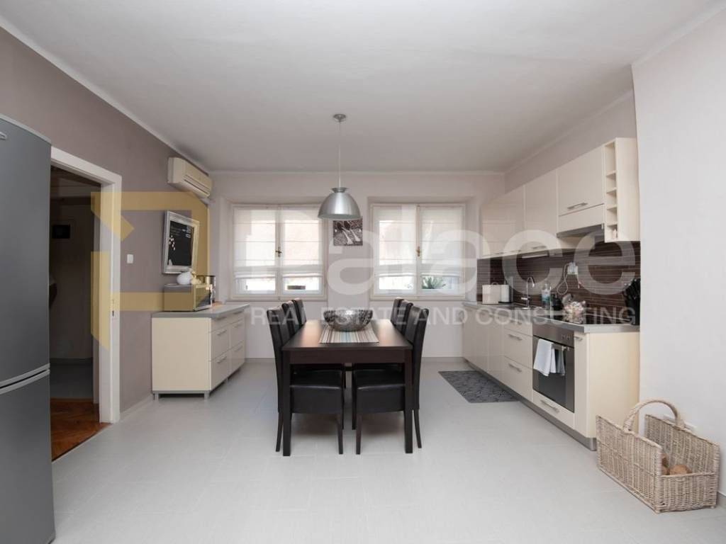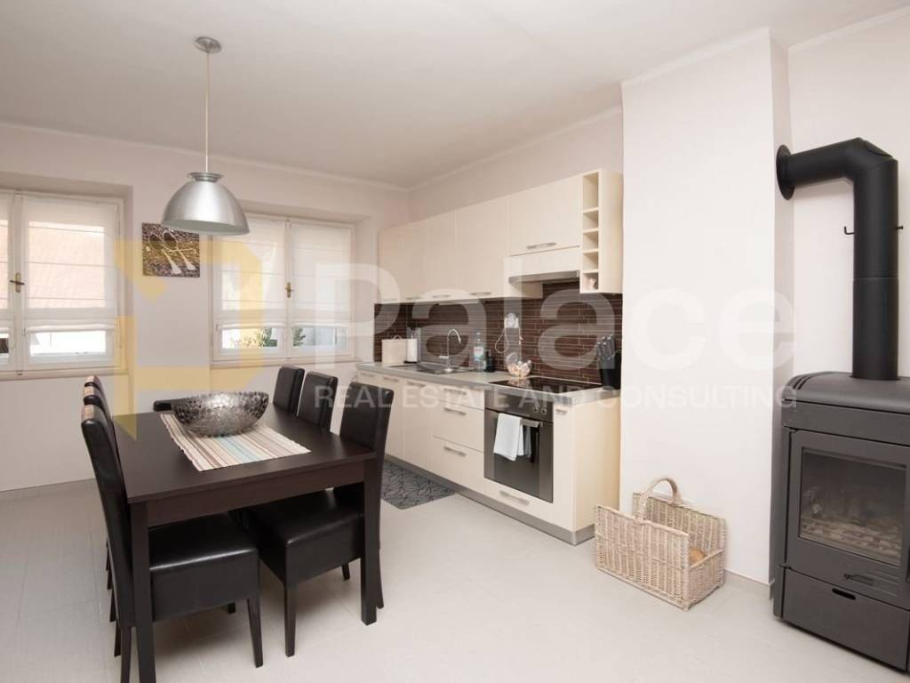 Die Wohnung befindet sich im ersten Stock und ist äußerst geräumig und schön eingerichtet. Renoviert im Jahr 2008, alle Installationen wurden ausgetauscht. Die Wohnfläche beträgt 86,90 m2 und besteht aus einem Eingangsbereich, zwei geräumigen Schlafzimmern mit Doppelbett und Schrank, einem Badezimmer und einem separaten WC sowie einem großen Open-Space-Bereich, in dem sich Küche, Essbereich und Wohnzimmer befinden. Zur Wohnung gehört eine nach innen ausgerichtete Terrasse, die Ruhe bietet, sowie ein Abstellraum. Im Hof befindet sich ein Häuschen von etwa 15 m2, das zu einem Gemeinschaftsraum oder einer anderen kleinen Wohneinheit umgebaut werden kann, da aufgrund der Höhe auch ein Galerieausbau möglich ist.
