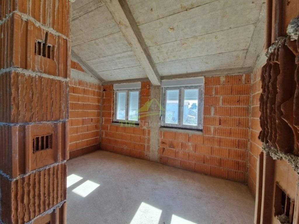 Kuća visoka prizemnica površine 135 m2; na zemljištu ukupne površine 450 m2; smještena na odličnoj lokaciji udaljeno svega 100 metara od mora, plaže te svih ostalih sadržaja potrebnih za ugodan život (dućana, pekare, kafića, trajektne luke...)Kuća se sastoji se od prizemlja te kata; trenutno je u visokoj Roh Bau fazi što daje budućem vlasniku mogućnost uređenja kuće po vlastitim željama.U samoj gradnji korišteni su vrhunski materijali; ugrađena vanjska PVC stolarija (Salamander) ; pokrivena pokrovom crijep Tondach Venera sa (15 cm kamene vune); fasadom (10 cm); ugrađenim Schiedel dimnjakom.Kompletna infrastruktura; položena priprema za struju, vodu te kanalizaciju (bio jama).Na okućnici je osiguran parking za minimalno 4 parkirna mjesta.Nekretnina idealna za investiciju te bavljenje turizmom.