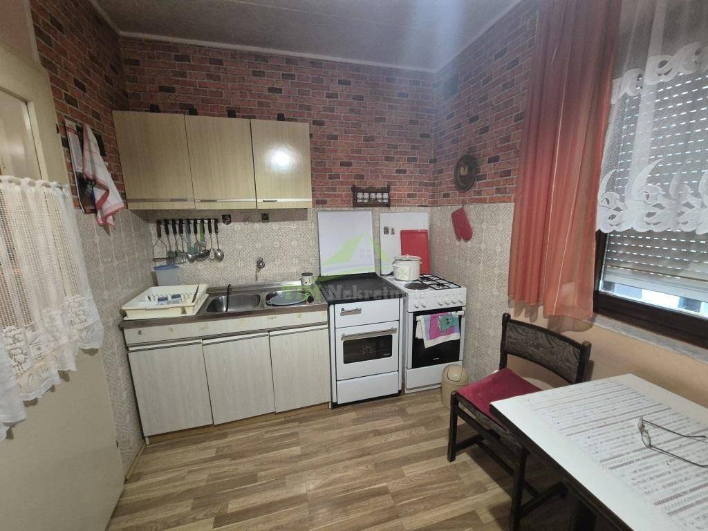 Kuća visoka prizemnica tlocrtne površine 70 m2 sa pomoćnim objektom površine 80 m2; smješteno na zemljištu ukupne površine 814 m2.Odlična lokacija; mirni i tihi kvart; okružena obiteljskim kućama.Kuća se sastoji od podruma; prizemlja te potkrovlja.Kompletna infrastruktura (struja, voda, septička jama); grijanje putem peći na kruta goriva.Drvena stolarija sa roletama; na podovima kombinacija parketa i keramike.Uz kuću se poklanja i parcela od 365 m2 udaljena 300 metara od kuće.