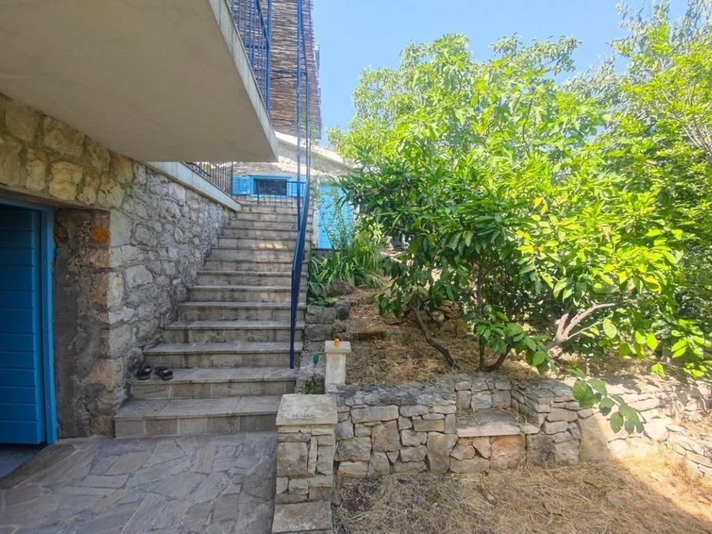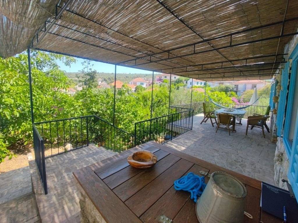 Auf einer der friedlichsten dalmatinischen Inseln, die für ihre türkisfarbenen Strände und das außergewöhnlich klare Meer bekannt ist, befindet sich dieses charmante Steinhaus, das authentischen dalmatinischen Geist ausstrahlt. Nur 80 Meter Luftlinie vom Meer entfernt, befindet sich das Anwesen in unmittelbarer Nähe aller wichtigen Einrichtungen – darunter Geschäfte und renommierte Restaurants. Das Haus erstreckt sich über ein Grundstück von ca. 400 m2 und ist auf drei Etagen verteilt: – Im Keller gibt es eine geräumige Taverne, die derzeit als Lagerraum genutzt wird, und eine kleine Werkstatt für die Instandhaltung des Gebäudes. – Im ersten Stock befindet sich eine komplett ausgestattete und möblierte Dreizimmerwohnung, verbunden mit einer großen zentralen Terrasse und einem wunderschön angelegten Innenhof. Im Garten befindet sich ein zusätzliches Steinhaus, das in eine Sommerküche mit großem Kamin und Essbereich im Freien umgewandelt wurde. – Die zweite Etage, die über eine Außentreppe erreichbar ist, umfasst einen geräumigen Dachboden mit angrenzender Terrasse. Obwohl teilweise möbliert, bietet dieser Raum hervorragendes Potenzial für den Umbau in eine zusätzliche Wohnung oder ein luxuriöses Penthouse mit Panoramablick auf die Stadt. Die Insel zeichnet sich durch ihre natürliche Schönheit, das klare Meer, die hervorragende Gastronomie und die Spitzenweine aus. Das Haus wird komplett möbliert verkauft und stellt eine ideale Gelegenheit dar, sowohl die Ruhe und Stille der Insel persönlich zu genießen als auch es touristisch zu vermieten.