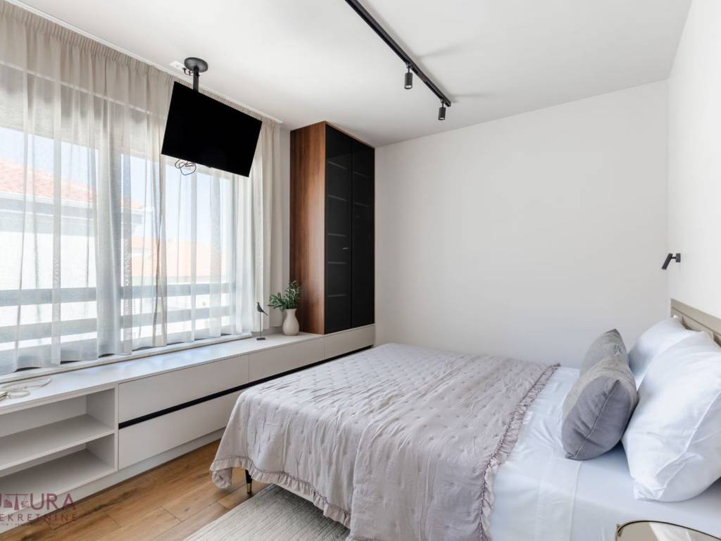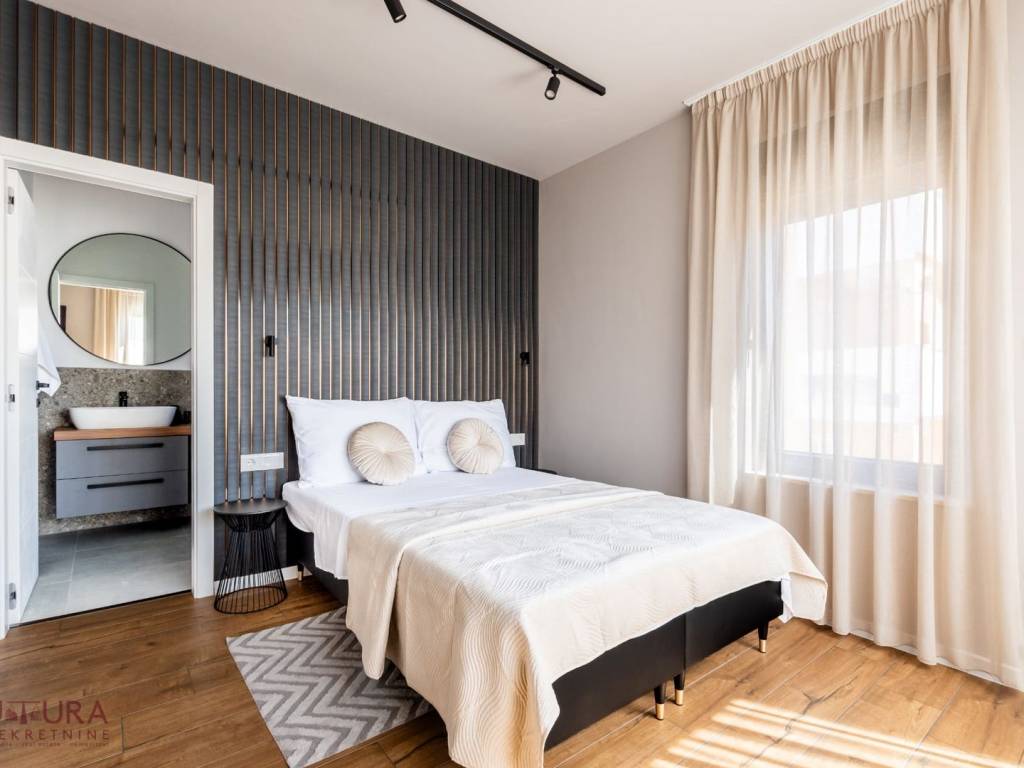 It is located in a great location 180 m away from the sea and the beach, close to shops, cafes, taverns and all other facilities needed for a pleasant holiday!