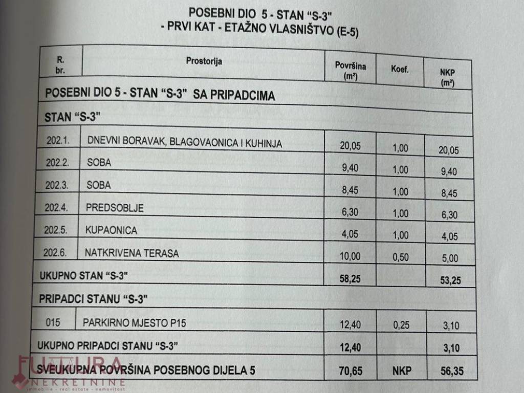Besteht aus: zwei Schlafzimmern, Wohnzimmer + Küche + Essbereich, Flur, Badezimmer und überdachter Terrasse.