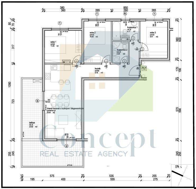 In einer ruhigen Wohngegend mit kompletter Infrastruktur, nur 1500 m vom Meer entfernt, wird eine Wohnung im zweiten Stock eines modernen Neubaus verkauft. Die Lage gewährleistet die Nähe zu allen notwendigen Einrichtungen wie Geschäften, Restaurants, Schulen und anderen Annehmlichkeiten für ein angenehmes Leben.Die Wohnung hat eine Fläche von 85,81 m² und besteht aus einem Eingangsflur, drei Schlafzimmern, zwei Badezimmern sowie einem großzügigen Wohnzimmer mit Küche und Essbereich, von dem aus man auf einen großen Balkon von fast 25 m² gelangt.Zur Wohnung gehört ein Parkplatz und ein Abstellraum.Das Gebäude wird einen Aufzug haben, was den Wohnkomfort zusätzlich erhöht.Für ein angenehmes Raumklima das ganze Jahr über wird die Wohnung mit Klimaanlagen ausgestattet. Im Wohnzimmer mit Küche und Essbereich sowie in den Badezimmern wird eine elektrische Fußbodenheizung installiert.Das Gebäude wird nach hohen Qualitätsstandards errichtet, mit sorgfältig ausgewählten Materialien, die Langlebigkeit und Energieeffizienz gewährleisten.Für weitere Informationen und zur Vereinbarung eines Besichtigungstermins kontaktieren Sie uns bitte.