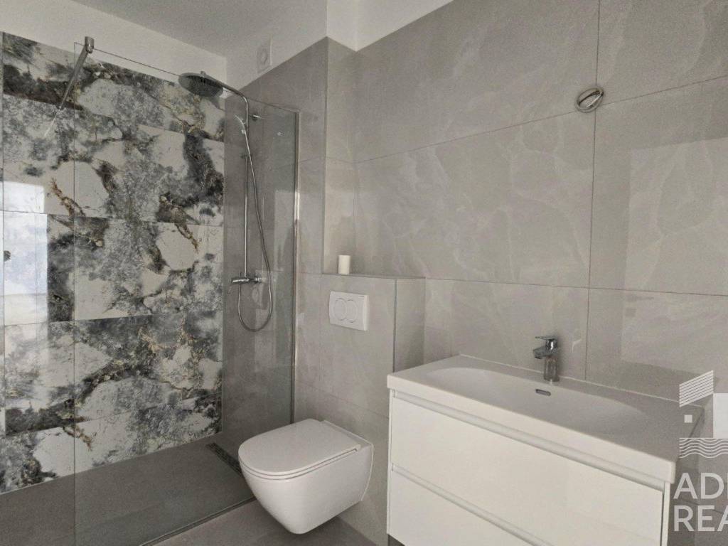Ein besonderer Vorteil dieser Wohnung ist der großzügige Garten mit einer Fläche von 121,55 m2, ideal zum Entspannen und Verweilen im Freien. Sie ist ausgestattet mit PVC/ALU-Fenstern mit Insektenschutzgittern, Fußbodenheizung im gesamten Raum sowie Klimaanlagen im Wohnzimmer und in den Schlafzimmern. Die Böden sind eine Kombination aus Keramik und Laminat, das gemeinschaftliche Treppenhaus ist mit Stein verkleidet, und die Terrassen verfügen über elegante Glasgeländer.