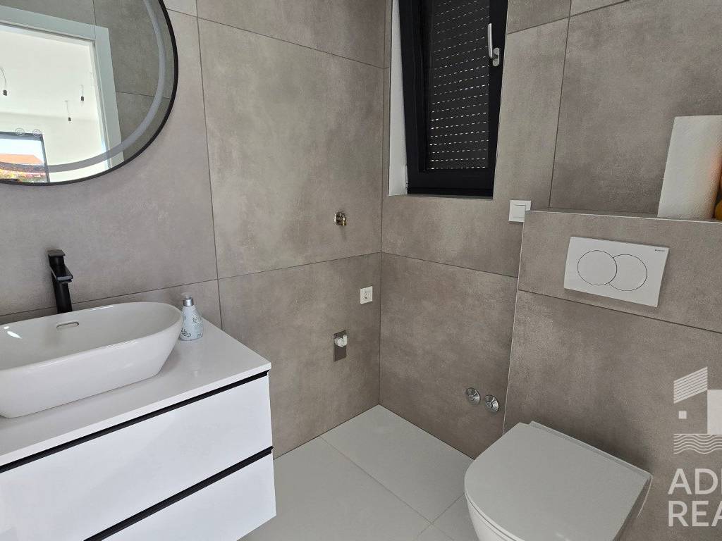 Prodaje se moderan dvoetažni stan površine 117 m2, smješten u mirnom dijelu Srime. Stanu pripada i uređeni vrt površine 50 m2 s privatnim bazenom, idealan za opuštanje i uživanje na otvorenom. Plaža i centar mjesta udaljeni su svega 650 m, što ovu nekretninu čini iznimno atraktivnom.