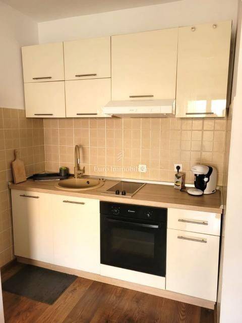 Stanovanje se nahaja v prvem nadstropju in je sestavljeno iz ene spalnice, dnevne sobe s kuhinjo in jedilnico, kopalnice, hodnika in terase z delnim pogledom na morje. Prodaja se opremljeno, klimatizirano.