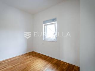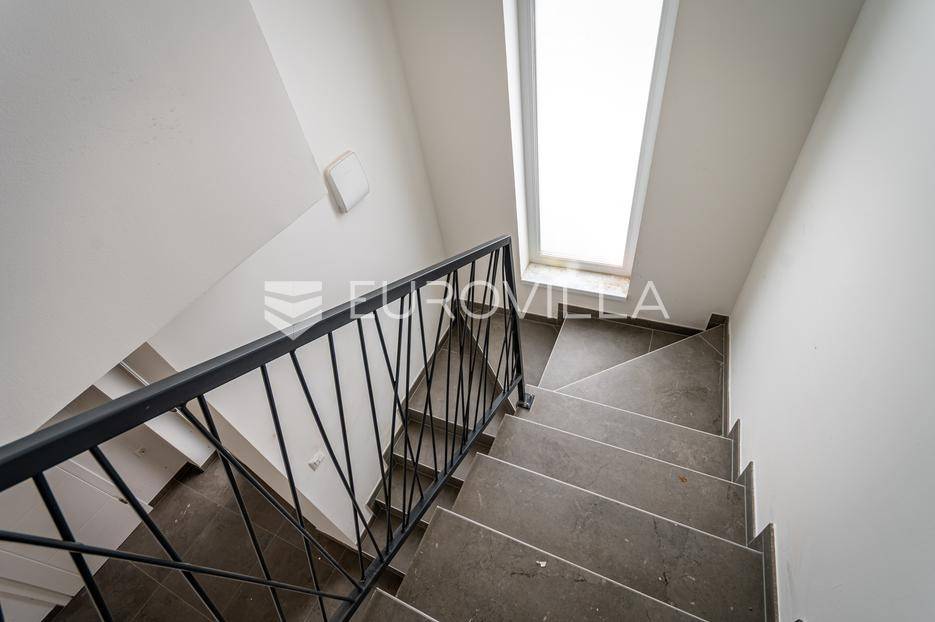 Sračinec, moderan četverosoban stan, ukupno NKP 118,85m2.Stan je raspoređen na dvije etaže, s jasno odvojenim dnevnim i spavaćim dijelom. Prizemlje obuhvaća ulazni trijem, hodnik, spremište, WC s tušem, te prostrani dnevni boravak otvorenog koncepta s kuhinjom i blagovaonicom koji vodi na natkrivenu terasu i privatni vrt.Na katu se nalaze tri spavaće sobe, garderoba, kupaonica, hodnik i unutarnje stubište koje povezuje obje etaže. Odlična orijentacija stana osigurava obilje prirodnog svjetla tijekom cijelog dana.Stan ima podno grijanje u cijelom prostoru putem dizalice topline, kupaonski radijator, pripremu za dvije klima jedinice (po jedna na svakoj etaži), kao i ugrađene rekuperatore za automatsku ventilaciju s povratom topline, što osigurava uvijek svjež i ugodan zrak.U cijenu je uključeno i vlastito označeno parkirno mjesto za dva automobila.Za više informacija i dogovor o razgledu, slobodno nas kontaktirajte!