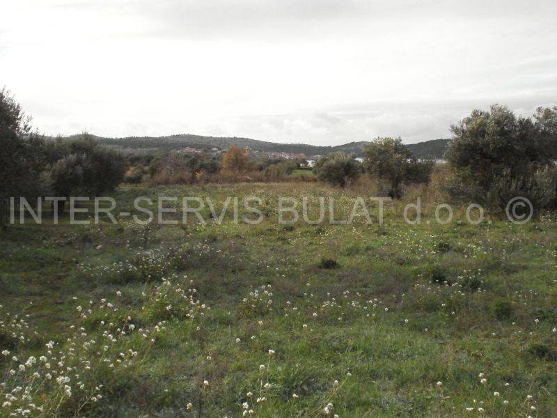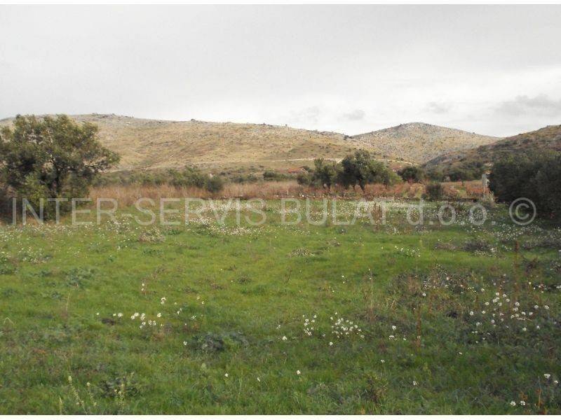 Landwirtschaftliche Fläche von 1.800qm, entlang der Hauptstraße nach Vrpolje gelegen (oberhalb der Straße). Der Grund ist entlang der Straße 22m breit und es gibt fünf Olivenbäume darauf.