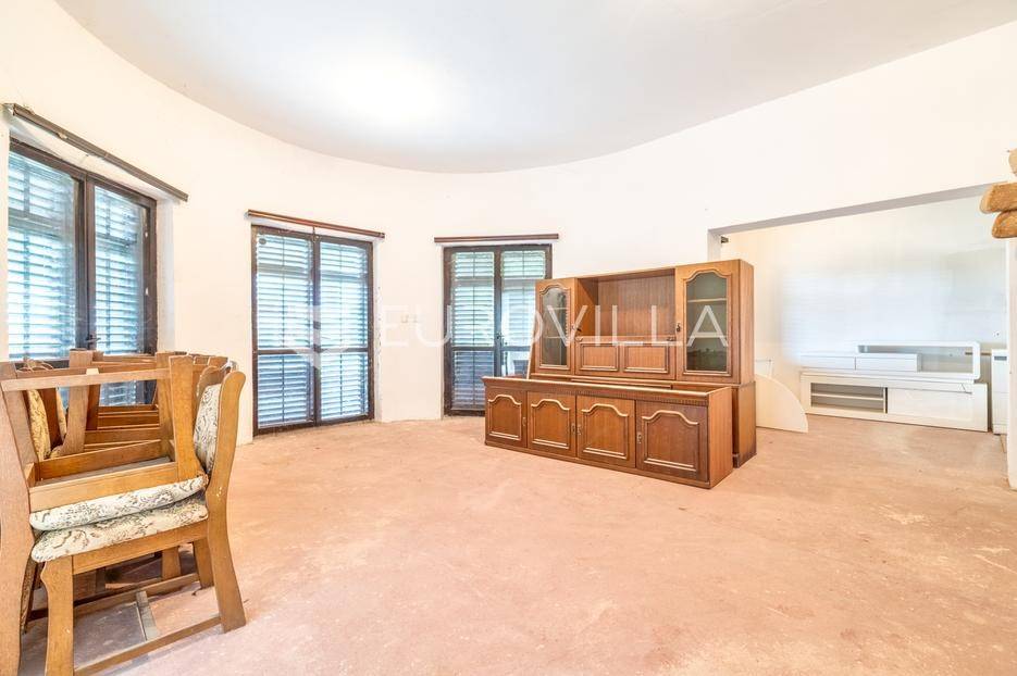 Kuća u Svetoj Nedelji ukupne stambene površine oko 400 m², s pripadajućim dvorištem od 530 m², smještena na zemljištu veličine 1.415 m². Objekt se sastoji od više etaža koje uključuju prostrane dnevne boravke, kuhinjski prostor, kupaonice i pomoćne prostorije. Velike staklene površine osiguravaju dobru osvijetljenost unutarnjih prostora, a kuća je okružena zelenilom i ima pristup dvorištu te mogućnost parkiranja više vozila.Kuća je predviđena za adaptaciju, što omogućuje budućem vlasniku prilagodbu rasporeda i uređenja prema vlastitim potrebama. Položaj nekretnine omogućava mirno okruženje u neposrednoj blizini Zagreba, uz jednostavan pristup glavnim prometnicama i sadržajima potrebnima za svakodnevni život.Ova nekretnina predstavlja dobru priliku za kupce koji traže veću kuću s dvorištem i okućnicom, uz mogućnost renovacije.Za sva pitanja Vam stojimo na raspolaganju.