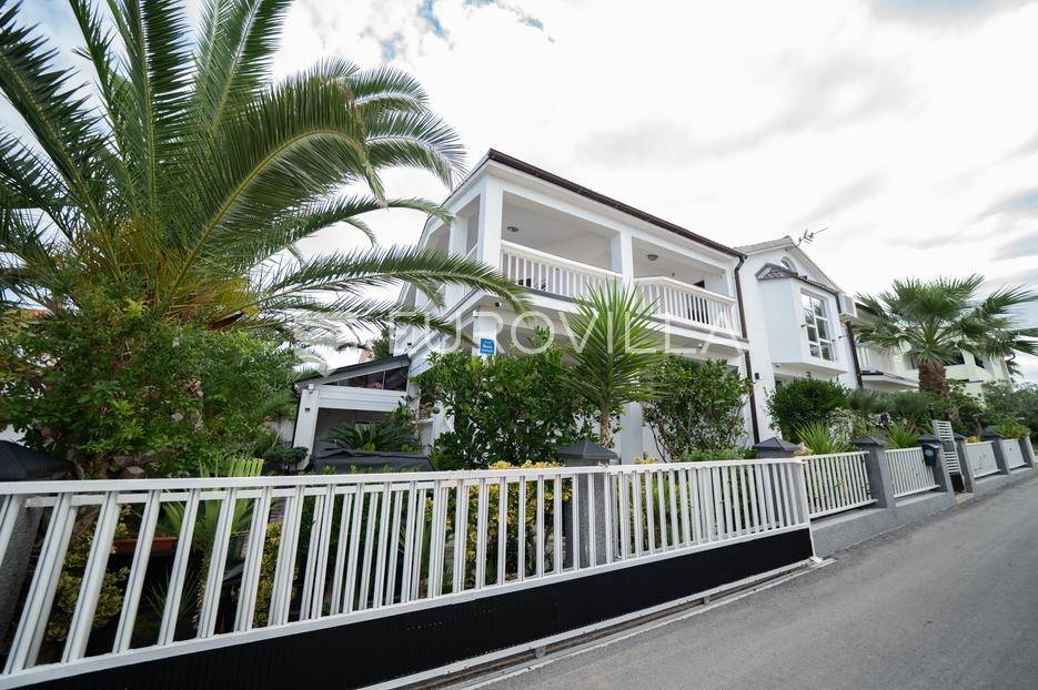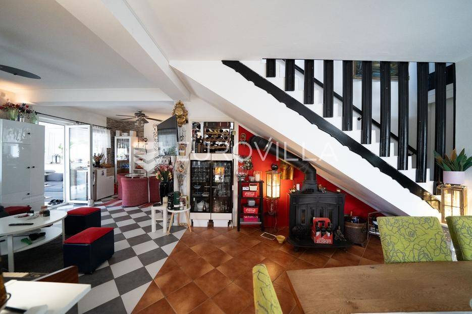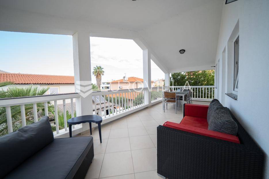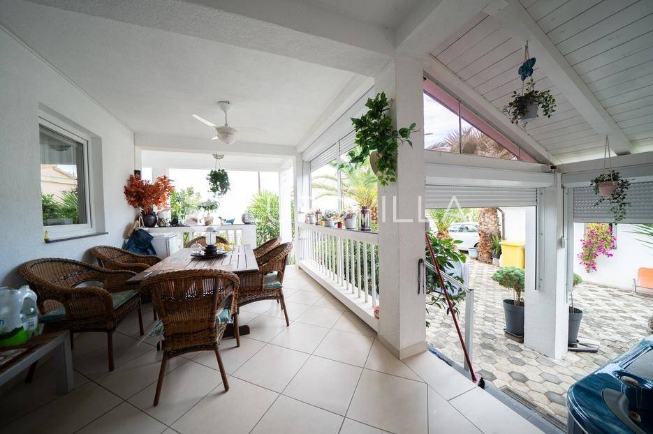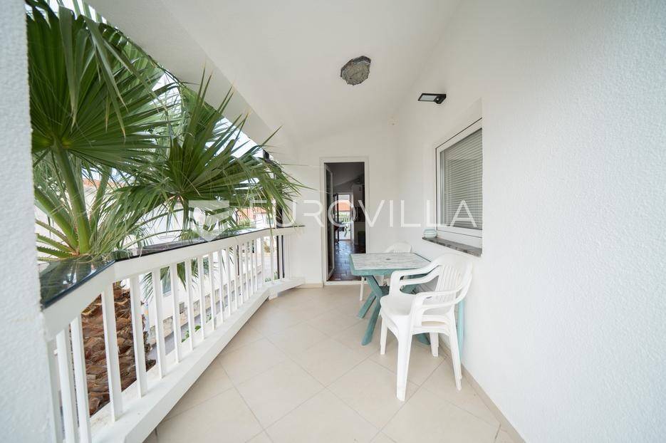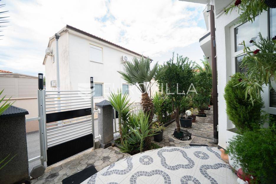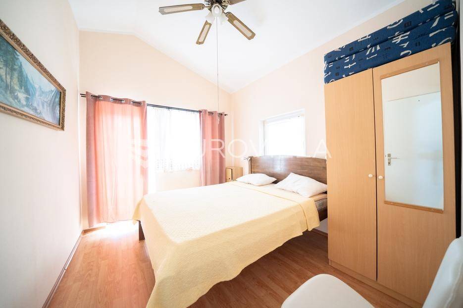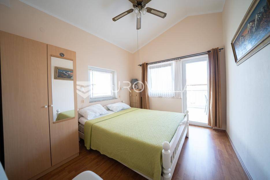 Zadar, Vir, lijepa, prostrana kuća na mirnoj lokaciji na otoku Viru.Sastoji se od dva stana sa komfornim rasporedom prostorija i svim sadržajima potrebnim za svakodnevni život.Stan u prizemlju sastoji se od dvije spavaće sobe, kupaonice, kuhinje, blagovaonice i dnevnog boravka te terase na kojoj se nalazi jacuzzi, idealnoj za opuštanje i uživanje.Unutarnjim stepeništem dolazi se na kat gdje se nalazi stan sa četiri spavaće sobe, dvije kupaonice, kuhinjom, blagovaonicom i dnevnom boravkom te dvije prostrane terase, a s jedne se pruža pogled na more.Kuća je klimatizirana, provedeno je i podno grijanje na vodu u cijeloj kući.Postavljeni su i solarni paneli te dodatno solarno za toplu vodu koje se nalazi u garaži/pomoćnom objektu površine 25 m2. Ovdje se nalazi i dodatna kupaonica.Dvorište je prekrasno uređeno te obiluje zelenilom i mediteranskim drvećem koje stvara poseban ugođajOva nekretnina je savršen spoj komfora i funkcionalnosti, pogodna za korištenje tokom cijele godine ili kao investicija u turizmu.Udeljenost od mora i plaže iznosi svega 70ak metara.Uredno vlasništvo.Stojimo Vam na raspolaganju za više informacija.