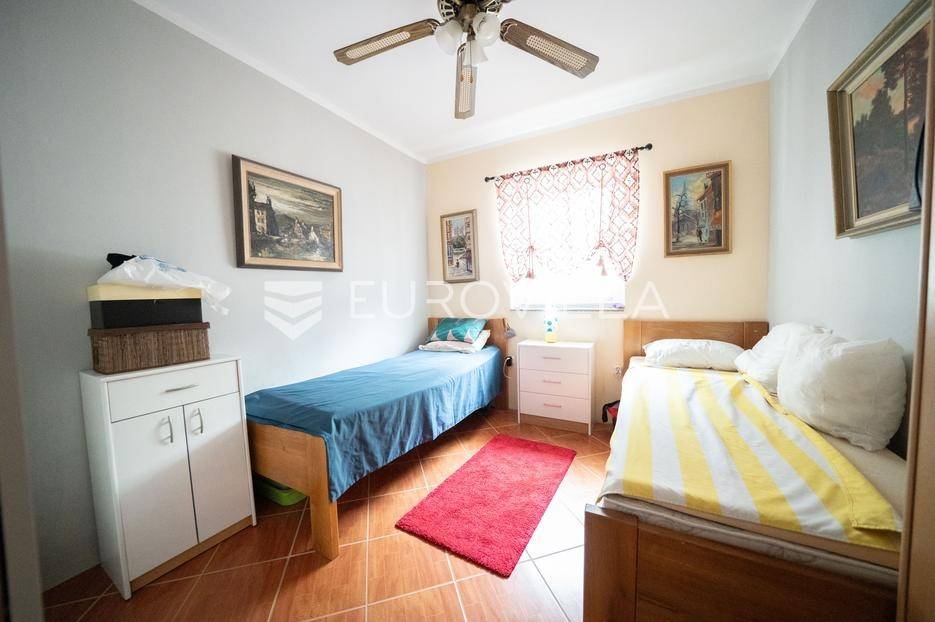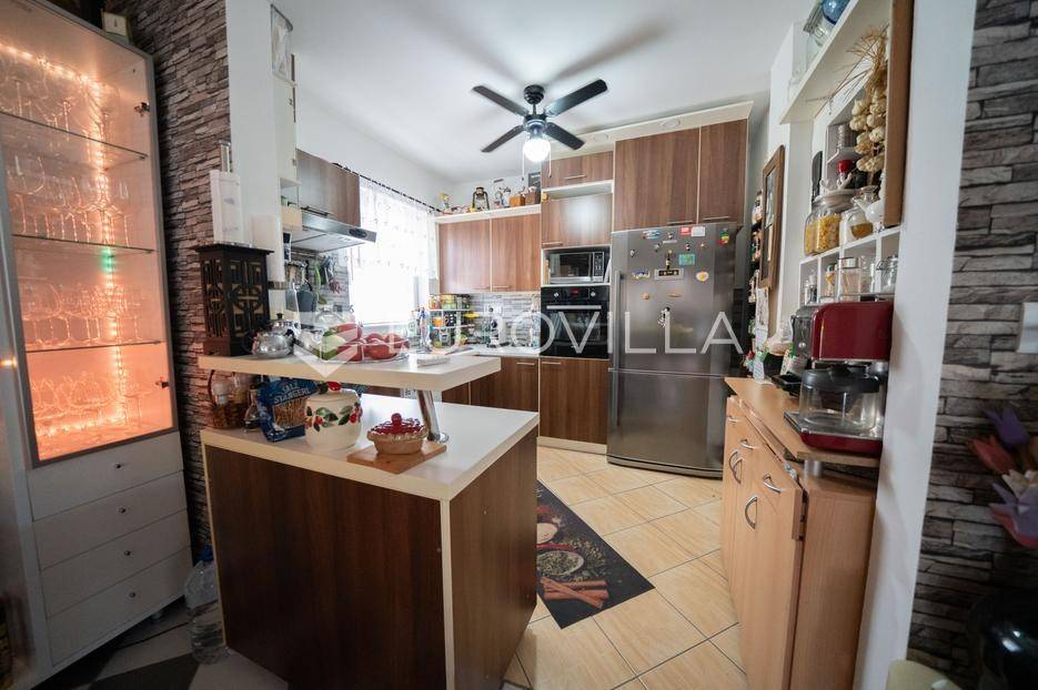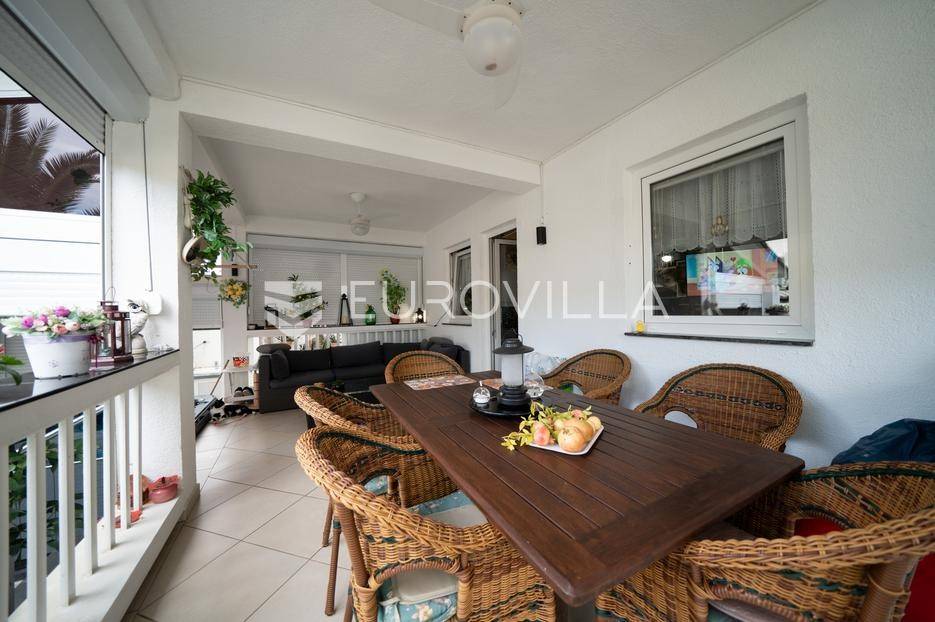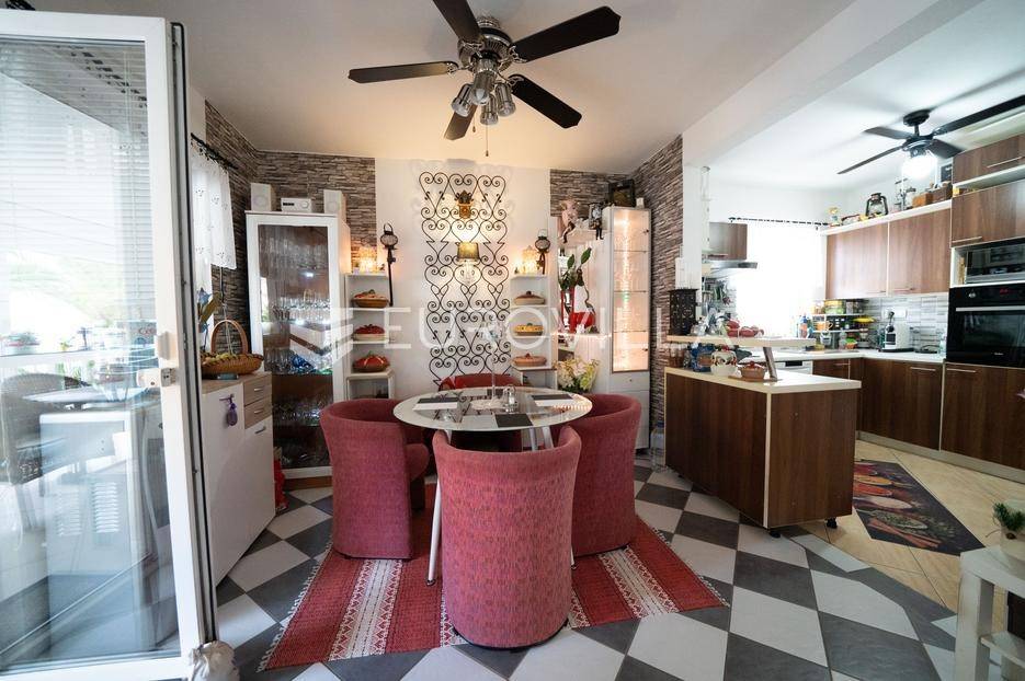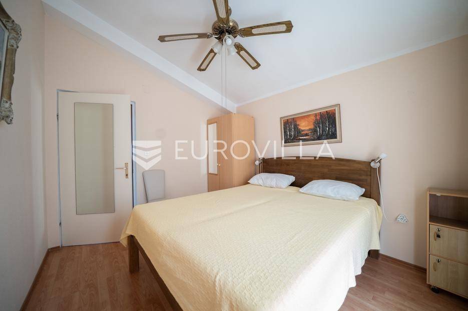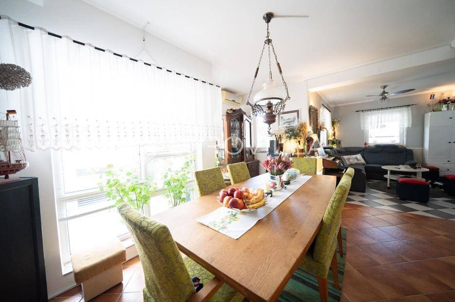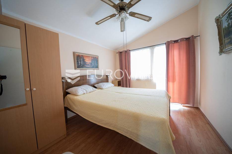 Zadar, Vir, lijepa, prostrana kuća na mirnoj lokaciji na otoku Viru.Sastoji se od dva stana sa komfornim rasporedom prostorija i svim sadržajima potrebnim za svakodnevni život.Stan u prizemlju sastoji se od dvije spavaće sobe, kupaonice, kuhinje, blagovaonice i dnevnog boravka te terase na kojoj se nalazi jacuzzi, idealnoj za opuštanje i uživanje.Unutarnjim stepeništem dolazi se na kat gdje se nalazi stan sa četiri spavaće sobe, dvije kupaonice, kuhinjom, blagovaonicom i dnevnom boravkom te dvije prostrane terase, a s jedne se pruža pogled na more.Kuća je klimatizirana, provedeno je i podno grijanje na vodu u cijeloj kući.Postavljeni su i solarni paneli te dodatno solarno za toplu vodu koje se nalazi u garaži/pomoćnom objektu površine 25 m2. Ovdje se nalazi i dodatna kupaonica.Dvorište je prekrasno uređeno te obiluje zelenilom i mediteranskim drvećem koje stvara poseban ugođajOva nekretnina je savršen spoj komfora i funkcionalnosti, pogodna za korištenje tokom cijele godine ili kao investicija u turizmu.Udeljenost od mora i plaže iznosi svega 70ak metara.Uredno vlasništvo.Stojimo Vam na raspolaganju za više informacija.