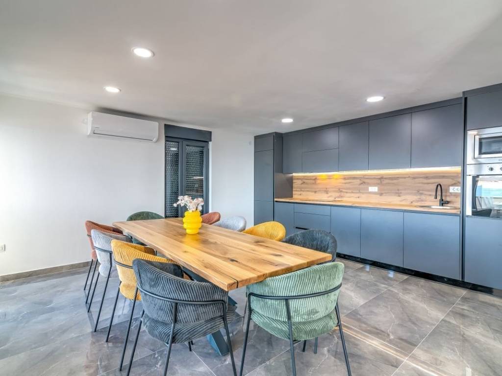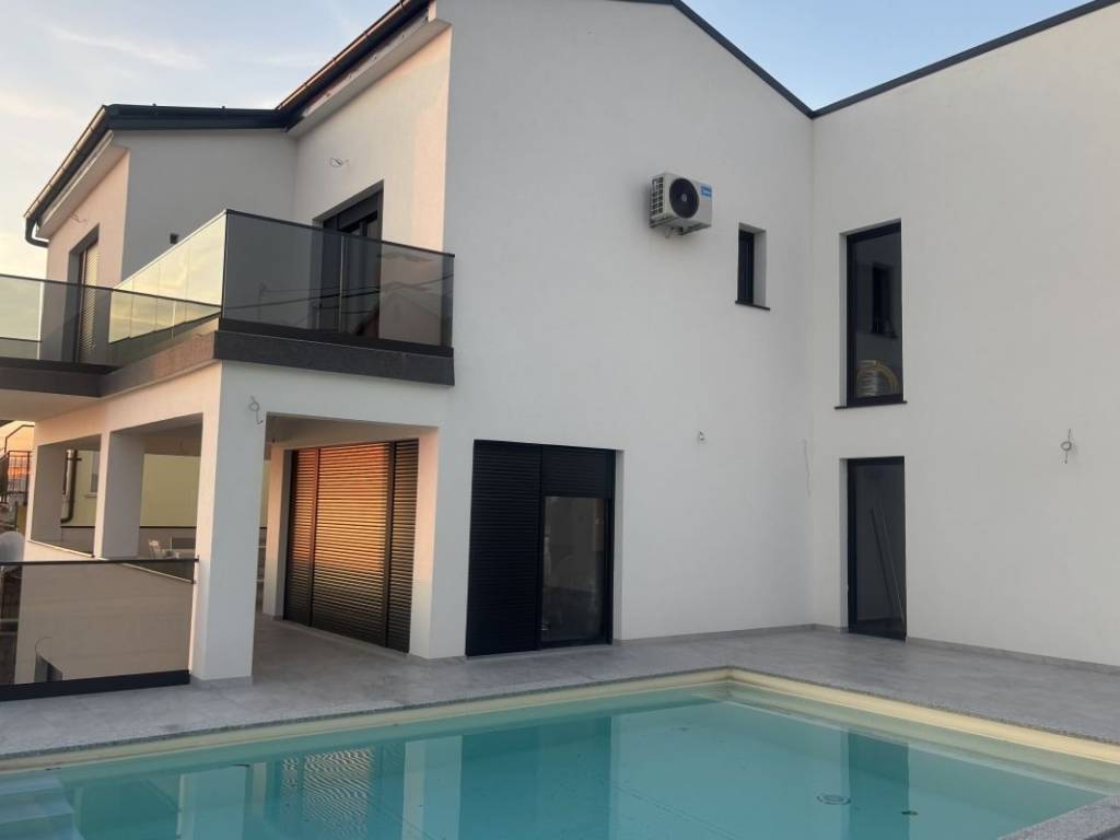 Eine wunderschöne, moderne Villa in dominanter Lage in der historischen Stadt Senj steht zum Verkauf. Dieses dreistöckige Haus mit einer Gesamtwohnfläche von 500 m² befindet sich auf einem ca. 450 m² großen Grundstück. Dank seiner Lage bietet fast jeder Raum einen zauberhaften Meerblick. Das Haus besteht aus Keller, Erdgeschoss und Obergeschoss. Das Untergeschoss ist als privater Bereich konzipiert und verfügt über zwei Schlafzimmer mit jeweils eigenem Bad. Es gibt außerdem ein kleineres Wohnzimmer mit Küche und Esszimmer. Das größere Schlafzimmer und das Wohnzimmer haben Zugang zum Innenhof. Darunter befindet sich außerdem ein Studio-Apartment mit eigenem Eingang. Diese Etage kann als Etage mit drei Wohnungen genutzt werden. Erdgeschoss und Obergeschoss sind so konzipiert, dass sie zusammenwirken. Das Erdgeschoss verfügt über ein geräumiges Wohnzimmer und ein luxuriöses Esszimmer mit einer modernen Küche mit klaren Linien und einem modernen Badezimmer. Dank der großen Glaswände ist der gesamte Raum lichtdurchflutet und bietet einen Panoramablick auf das Meer und die Inseln. Vom Wohnzimmer gelangt man auf eine Außenterrasse mit Swimmingpool und Liegewiese. Es gibt außerdem einen Essbereich im Freien und einen Grill. Im Erdgeschoss befindet sich ein Raum mit Sauna und Whirlpool, der der Villa zusätzliches Prestige verleiht. Eine Innentreppe führt in den ersten Stock, wo sich drei Schlafzimmer mit jeweils eigenem Bad und zwei mit eigenem Ausgang zur Terrasse befinden. Alle Badezimmer sind mit hochwertiger Badausstattung und Sanitäranlagen ausgestattet. Das Haus verfügt über vier private Parkplätze und eine Garage. Der Hof ist gepflegt und gepflastert. Das Haus ist neu gebaut und unbenutzt. Dank der durchdachten Raumaufteilung eignet es sich sowohl als luxuriöse Ferienvilla als auch als Haus mit separaten Wohneinheiten.