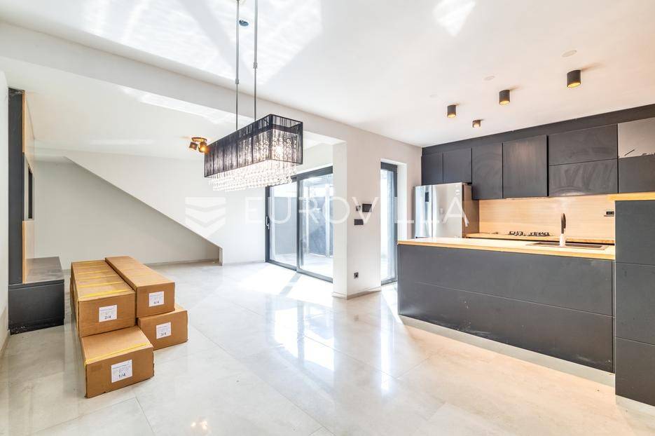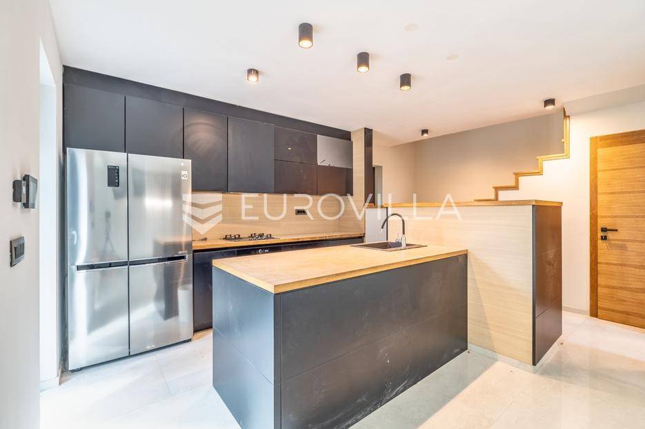 Samobor, na vrhunskoj lokaciji prodaje se kuća koja pruža spoj udobnosti, kvalitete i praktičnosti.Kuća se prostire na tri etaže s ukupnom stambenom površinom od 144 m², smještena na parceli od 95 m².Prizemlje čini ulazni prostor te prostrani dnevni boravak povezan s kuhinjom i blagovaonicom, uz dodatnu kupaonicu. Na prvom katu nalazi se kupaonica, dvije spavaće sobe, obje s izlazom na terasu na kojoj će biti postavljena pergola, idealno mjesto za opuštanje i uživanje na otvorenom. Potkrovlje nudi veliku spavaću sobu.Uz kuću je moguća i kupnja garaže površine 14,50 m² u neposrednoj blizini po cijeni od 25.000 €.Posebna pažnja posvećena je kvaliteti gradnje i uređenja. Kuhinja je napravljena po mjeri i opremljena svim aparatima, kupaonice su opremljene ormarićima, vrhunskom sanitarnom opremom i talijanskom keramikom. Vanjska stolarija je aluminijska s električnim roletama, fasada izvedena u stiroporu i dijelom od prave kamene cigle, a grijanje je plinsko centralno podno s Bosch bojlerom koji omogućuje zasebno podešavanje temperature po etažama. Tu su i Vimar prekidači, videoportafon, dok su unutarnje dvorište i prostor ispred kuće uređeni u kocki, s ogradom i vratima izrađenima po mjeri. Dodatno su provedene instalacije za još jednu kupaonicu.Ova nekretnina pruža udobnost i praktičnost, idealna je za obitelji, starije osobe ili sve koji traže kvalitetan životni prostor uz niske režijske troškove.Lokacija:Neposredna blizina osnovne i srednje škole, doma zdravlja, trgovačkih centara, restorana i svih važnih sadržaja.Za sve dodatne informacije slobodno nas kontaktirajte.