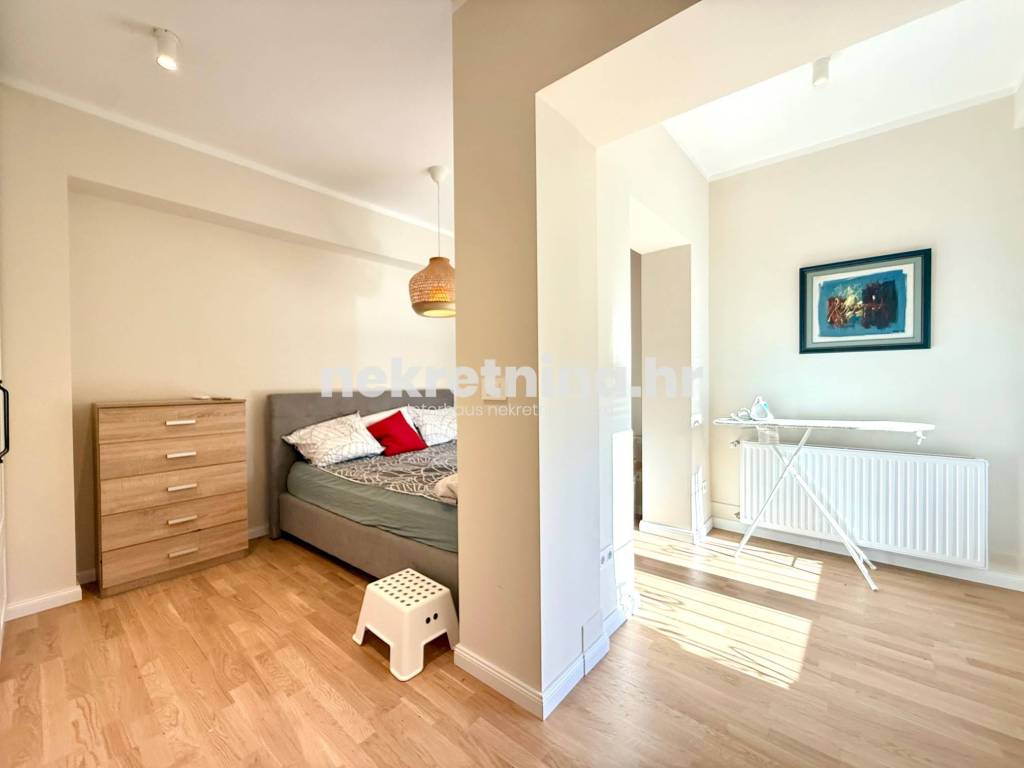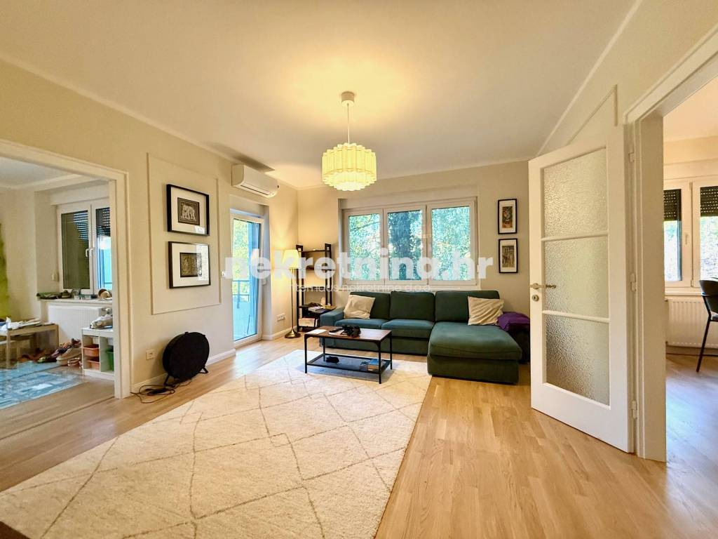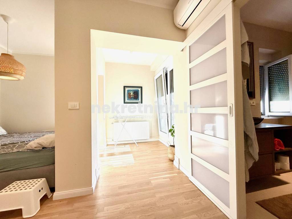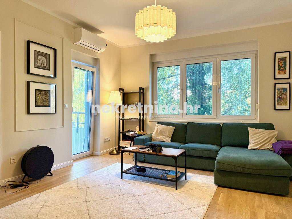 Stan je potpuno renoviran zaključno sa 2025.godinom - (visina stropova je 2,75-2,80cm), kompletno nove instalacije (struja, voda, grijanje – plinsko etažno + električno podno grijanje u kupaonici), pvc stolariju sa trokomornim staklima i komarnicima, klima uređaje (Daikin), protuprovalna ulazna vrata, renovaciju izvorne unutarnje stolarije, nova DanKuchen kuhinja po mjeri sa Bosch aparatima (pećnica, perilica i indukcija sa integriranom napom) i Whirlpool 6th sense ugradbenim hladnjakom.