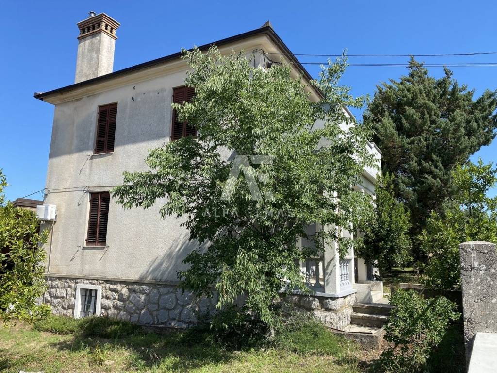 Malinska, zwei Einfamilienhäuser in ruhiger Lage auf einem Grundstück von 1983m2, nur 1000m vom Meer entfernt. Das erste Grundstück befindet sich im oberen Teil des Grundstücks, Wohnfläche 250m2. Etagen Keller, Erdgeschoss und Obergeschoss. Im Untergeschoss befindet sich eine Küche mit Speisekammer und ein Heizraum. Im Erdgeschoss, das über einen separaten Eingang verfügt, befinden sich eine Eingangshalle, ein Wohnzimmer, zwei Schlafzimmer, eine Toilette und ein Badezimmer. Vom Wohnzimmer gibt es einen Ausgang zur überdachten Terrasse mit Meerblick. Eine Innentreppe führt uns in den ersten Stock, wo sich vier Schlafzimmer, ein Badezimmer, eine Toilette und eine Terrasse befinden.