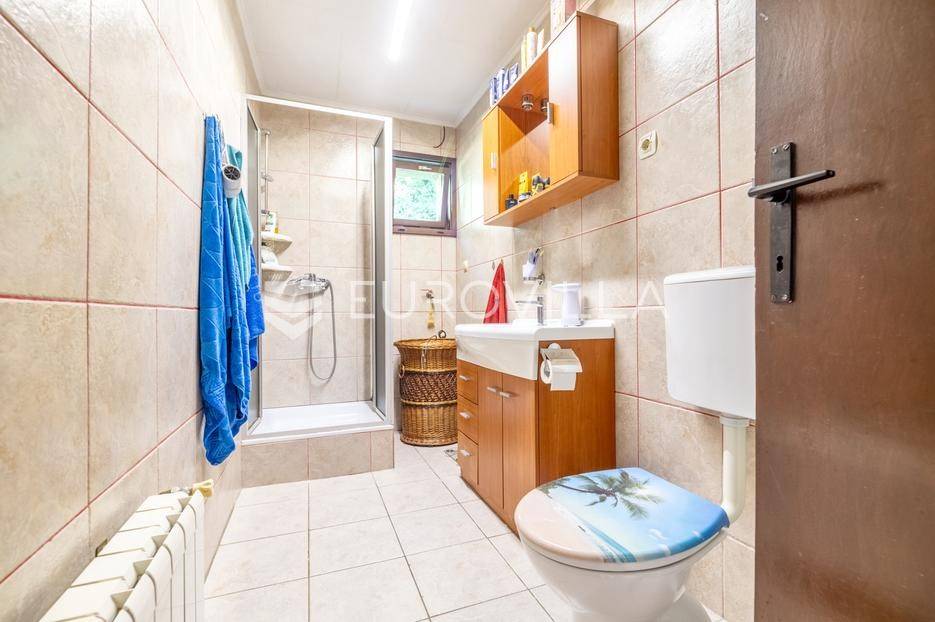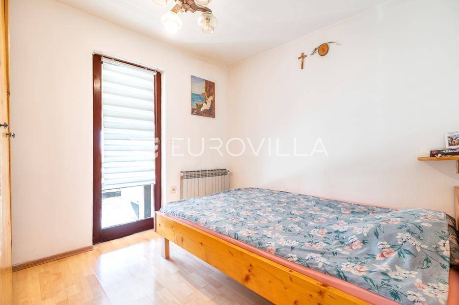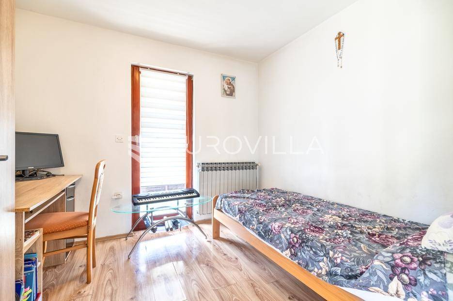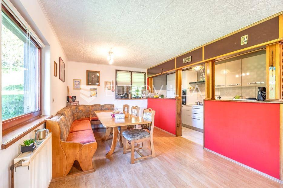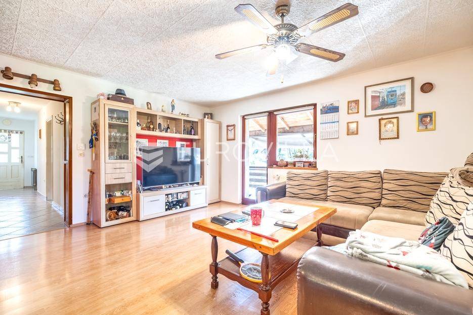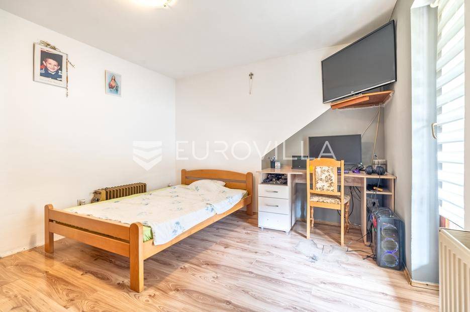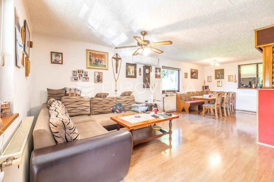 Marija Gorica - Bijela Gorica , funkcionalna kuća površine 300 m2 na zemljištu od 637 m2 s kojeg se proteže prekrasan panoramski pogled.Prizemlje se sastoji od podruma, garaže, radione i ljetne kuhinje.Prvi kat se sastoji od tri spavaće sobe, kupaonice i dnevnog boravka s izlazom na terasu.Potkrovlje nije dovršeno, sastoji se od velikog open space prostora te se može koristiti kao odvojena stambena jedinica.U dvorištu se nalaze 4 parkirna mjesta te prekrasan vrt prepun zelenila.Idealan tlocrt, centralno plinsko grijanje.Nalazi se u uvučenoj ulici i neposrednoj blizini svih potrebnih sadržaja na odlično prometno povezanoj lokaciji - okružen stambenim nekretninama.Sve ostale informacije na upit.