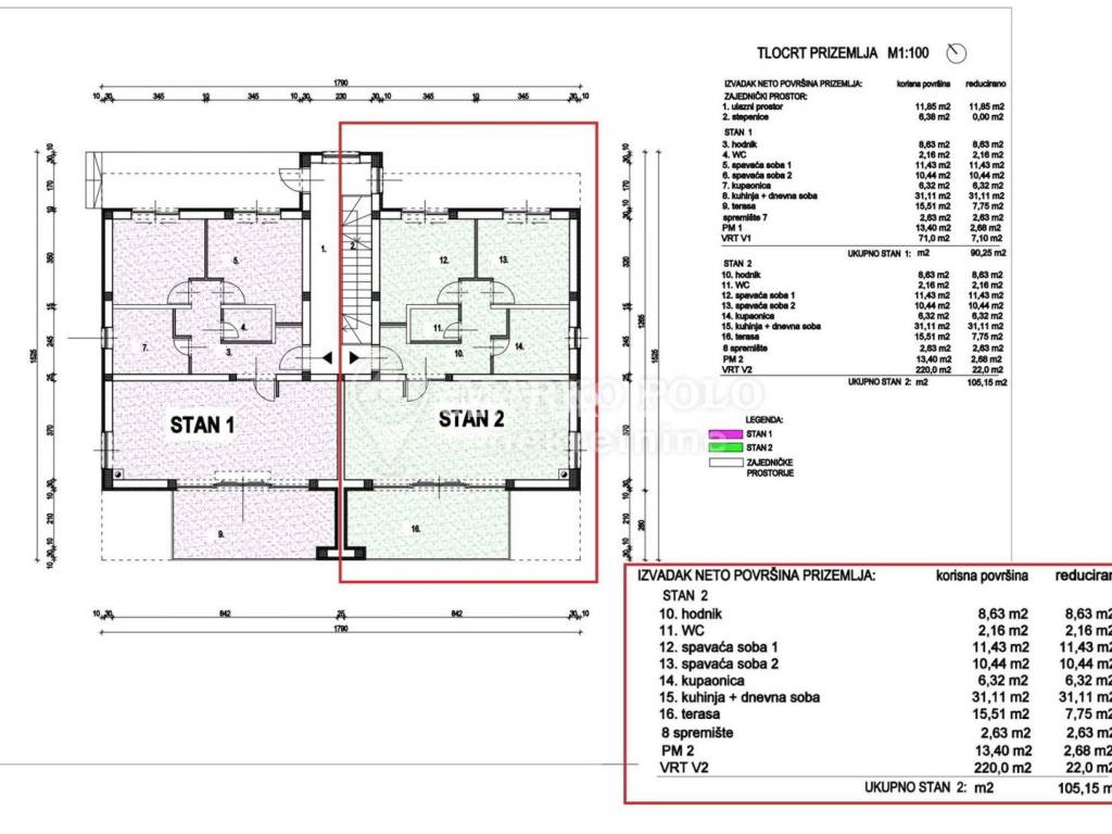 Wir präsentieren eine Wohnung mit einer Fläche von 102,13 m2, gelegen im Erdgeschoss eines zweistöckigen Gebäudes in Sveti Filip i Jakov. Diese Neubauimmobilie aus dem Jahr 2025 befindet sich an einer ruhigen Lage, in unmittelbarer Nähe zur Natur, was ein besonderes Gefühl von Privatsphäre und Entspannung bietet.