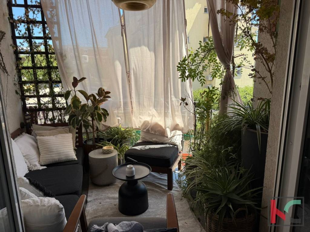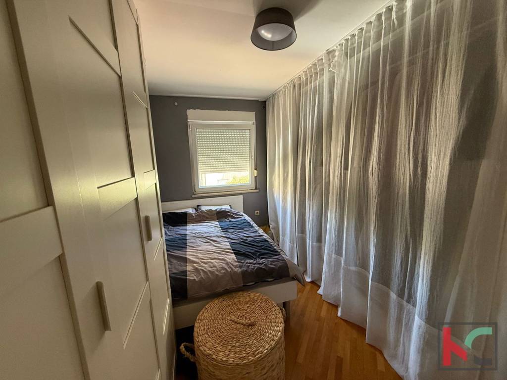 Eine Wohnung im zweiten Stock eines gepflegten, kleineren Gebäudes neueren Baujahrs wird in der Nähe des Stadtzentrums von Pula verkauft.