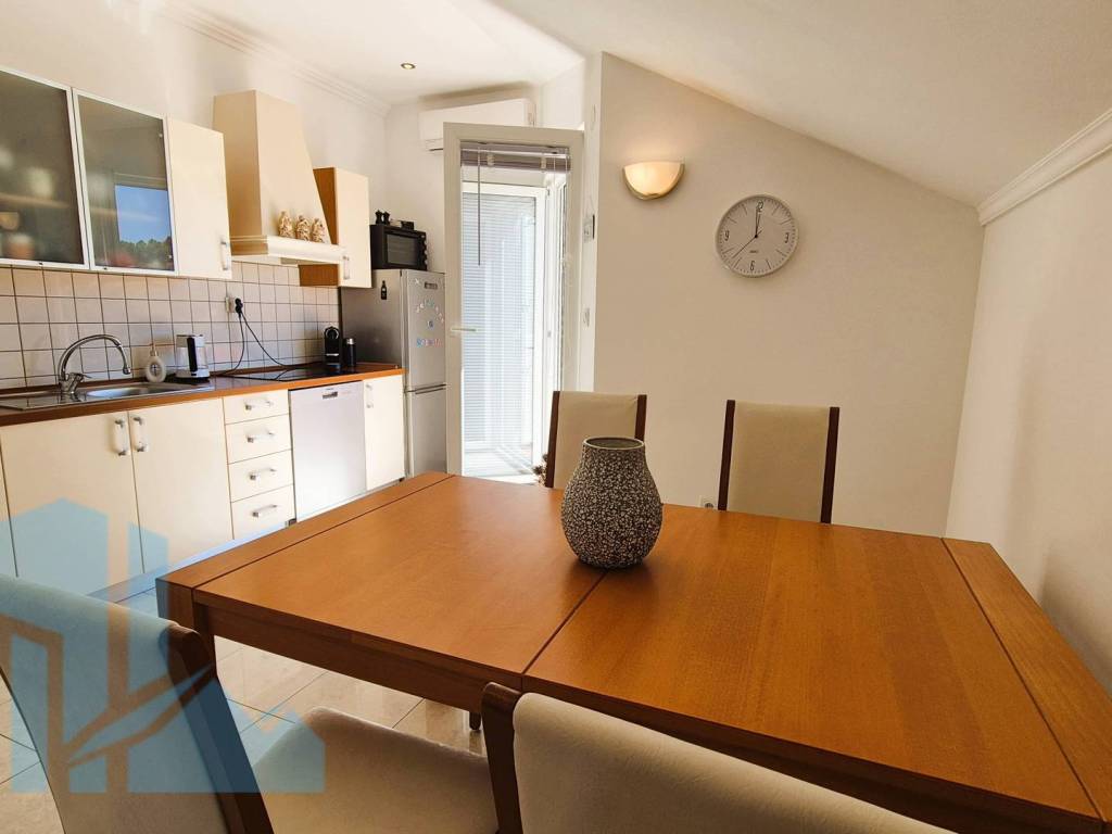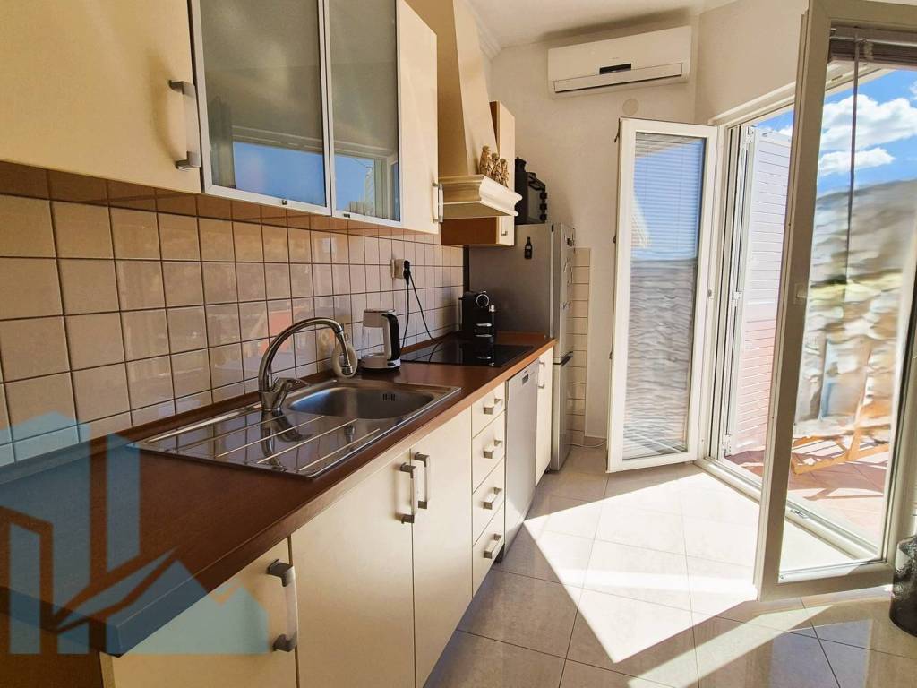 Zum Verkauf steht eine attraktive Wohnung im oberen Dachgeschoss eines Wohngebäudes, das nur 100 Meter vom Meer entfernt ist. Die Wohnung befindet sich in einem qualitativ hochwertig gebauten Haus aus dem Jahr 2005, die letzte Renovierung wurde 2022 durchgeführt. Sie wird mit einer Garage von 19 m² und komplett möbliert verkauft.