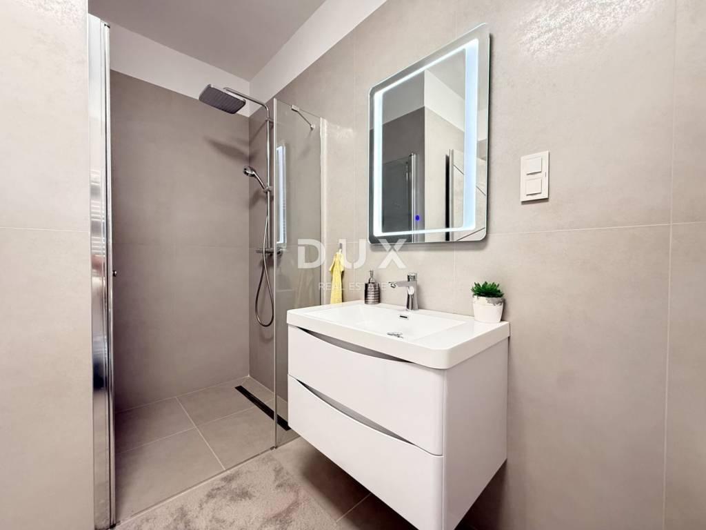 KLENOVICA – Luxuswohnung in erster Reihe zum Meer in einem Neubau ERSTE REIHE ZUM MEER – PANORAMABLICK – EXKLUSIVE WOHNUNG MIT ERSTKLASSIGER DEKORATION. Eine einzigartige Immobilie in Klenovica steht zum Verkauf – eine exklusiv eingerichtete Wohnung in einem kleineren Neubau (2023), buchstäblich 10 Meter vom Meer entfernt. Diese Gelegenheit bietet sich selten auf dem Markt – eine erstklassige Wohnung in prestigeträchtiger Lage, voll möbliert und bereit, ohne Kompromisse genossen zu werden. Die Wohnung befindet sich im zweiten Stock, zugleich im obersten Stockwerk, und nimmt die beste Lage im Gebäude ein. Gesamtfläche 90,79 m², und die Aufteilung umfasst: geräumige Küche, Esszimmer und Wohnzimmer (36,54 m²) Flur (6,43 m²) zwei komfortable Schlafzimmer (11,49 m² und 13,39 m²) zwei luxuriöse Badezimmer (5,98 m² und 5,53 m²) Abstellraum überdachte Terrasse (10,33 m²) mit unverbaubarem Panoramablick auf das Meer. Die Wohnung ist mit hochwertigsten Materialien und maßgefertigten Möbeln ausgestattet und jedes Detail wurde sorgfältig durchdacht. Jeder Raum in der Wohnung hat Fußbodenheizung, viel natürliches Licht und vermittelt einen Eindruck von Eleganz, Komfort und Luxus. Das Gebäude ist eingezäunt, ebenso wie der Garten, und im Hof gibt es einen privaten Ausgang direkt zum Strand. Obwohl es in der ersten Reihe zum Meer liegt, ist die Lage äußerst ruhig und privat, perfekt für ein entspanntes Leben am Meer, ohne Lärm und Menschenmassen. Das Gebäude ist kleiner und hat einen privateren Charakter, was zusätzlich zum Gefühl von Luxus und Sicherheit beiträgt. Zur Wohnung gehört auch ein eigener Parkplatz. Eine echte Rarität auf dem Markt, eine fantastische Immobilie für alle, die höchste Qualität, stressfrei und ohne zusätzliche Investitionen suchen. Geeignet sowohl zum dauerhaften Wohnen als auch als luxuriöses Ferienhaus oder als sichere Investition für die Vermietung auf höchstem Niveau. Diese Gelegenheit sollten Sie sich nicht entgehen lassen. Bei jeder Besichtigung der Immobilie ist die Unterzeichnung eines Vermittlungsvertrags obligatorisch! Sehr geehrte Kunden, die Agenturprovision wird gemäß den Allgemeinen Geschäftsbedingungen berechnet: www.dux-nekretnine.hr/opci-uvjeti-poslovanja ID CODE: 42184 Domagoj Ivezić Agent s licencom Mob: +385 97 6910 507 Tel: +385 91 480 8808 E-mail: domagoj@dux-nekretnine.hr www.dux-nekretnine.hr