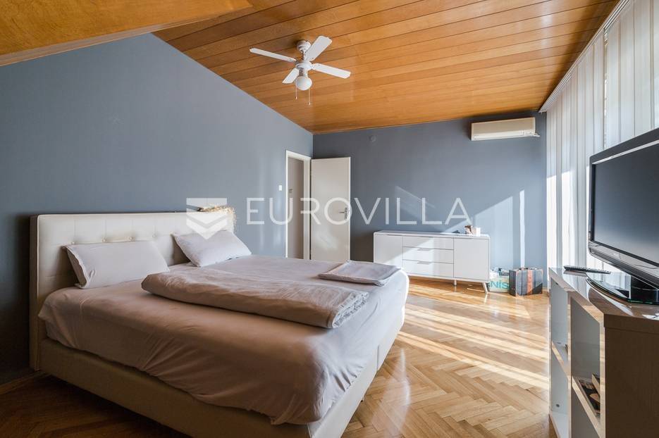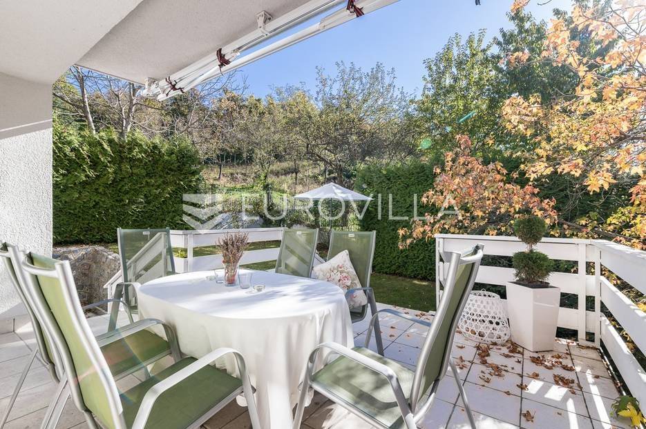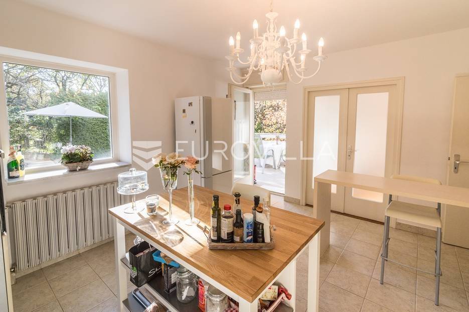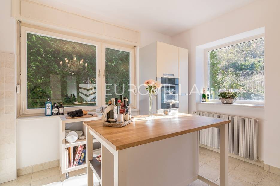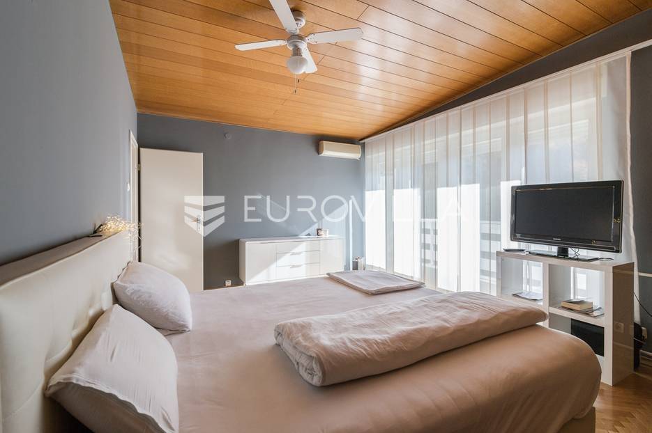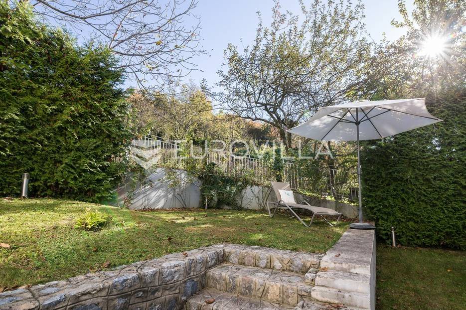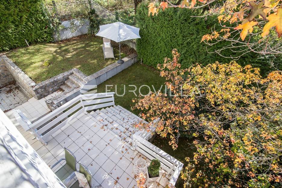 Mlinovi, vrlo ugodna, adaptirana samostojeća kuća s izlazom na prelijepi vrt veličine 500 m2. Kuća se sastoji od:Prizemlje: ulazni hodnik, toalet, dnevni boravak s blagovaonicom, kuhinja, velika terasa, te vrt;Prvi kat: 3 spavaće sobe (svaka s izlazom na balkon), kupaonica;Drugi kat: 2 spavaće sobe, garderoba, kupaonica, 2 balkona;Podrum: vešeraj, garaža za 1 auto, spremište.Ispred kuće se nalazi parking za 2-3 automobila. Kuća je o premljena s 6 klima uređaja, alarmom, portafonom, podnim grijanjem u kupaonici i kuhinji, roštilj, automatskim garažnim vratima, automatskim navodnjavanjem vrta i slično. Ostale infromacije na upit.
