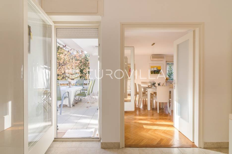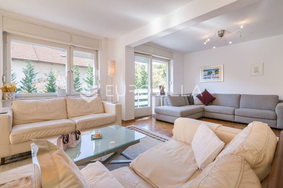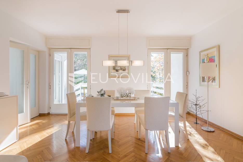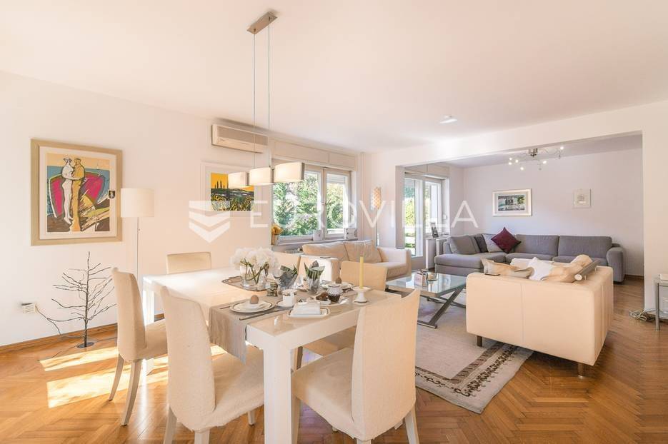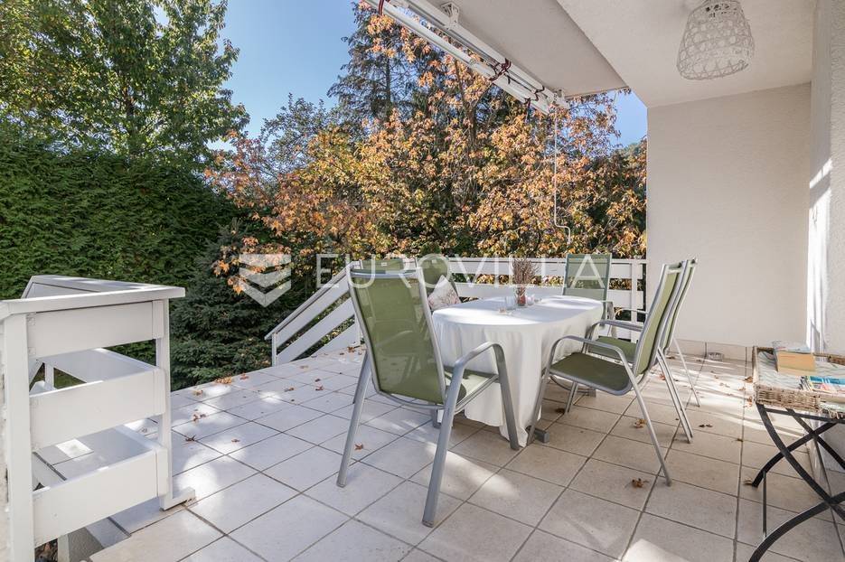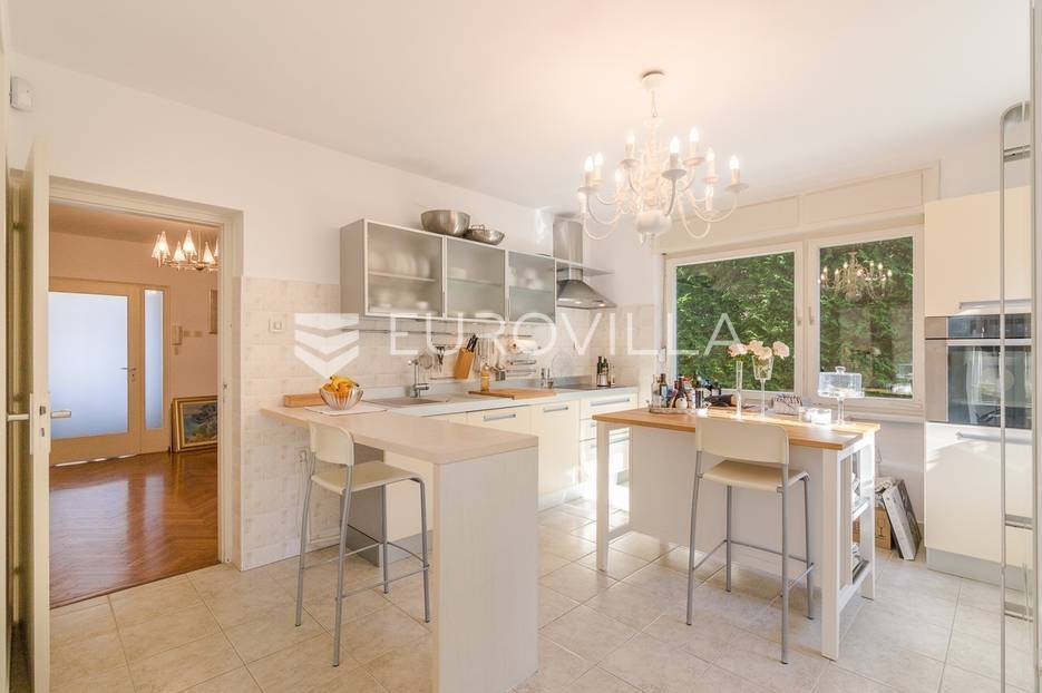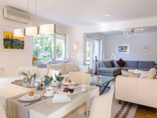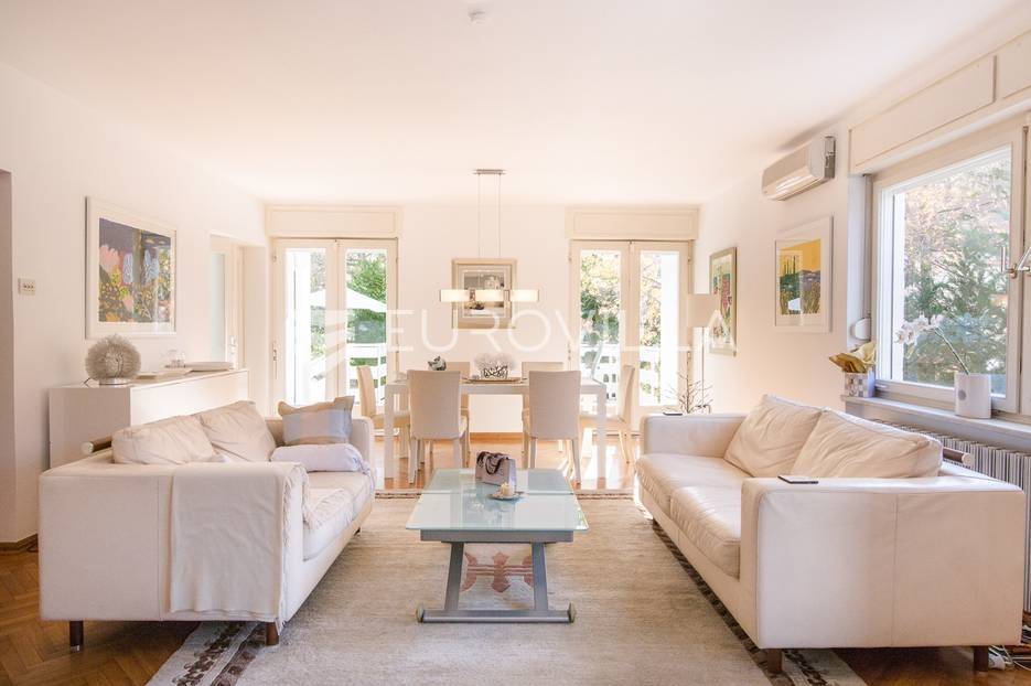 Mlinovi, vrlo ugodna, adaptirana samostojeća kuća s izlazom na prelijepi vrt veličine 500 m2. Kuća se sastoji od:Prizemlje: ulazni hodnik, toalet, dnevni boravak s blagovaonicom, kuhinja, velika terasa, te vrt;Prvi kat: 3 spavaće sobe (svaka s izlazom na balkon), kupaonica;Drugi kat: 2 spavaće sobe, garderoba, kupaonica, 2 balkona;Podrum: vešeraj, garaža za 1 auto, spremište.Ispred kuće se nalazi parking za 2-3 automobila. Kuća je o premljena s 6 klima uređaja, alarmom, portafonom, podnim grijanjem u kupaonici i kuhinji, roštilj, automatskim garažnim vratima, automatskim navodnjavanjem vrta i slično. Ostale infromacije na upit.