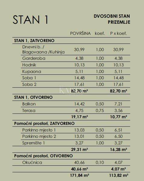 Die Gesamtfläche des Grundstücks beträgt 171,84 m², der Gesamtnutzwert der Fläche beträgt unter Berücksichtigung der entsprechenden Koeffizienten 113,82 m².