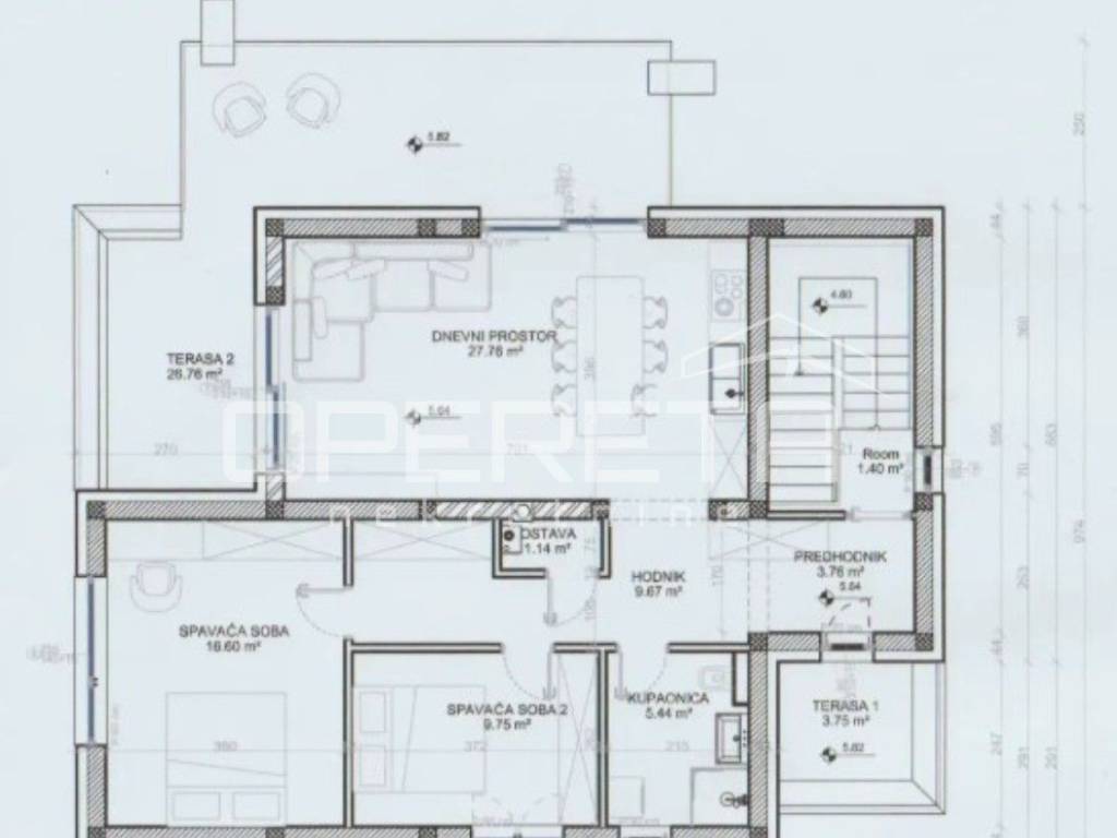 Trosoban stan u mirnoj slijepoj ulici s pripadajućom terasom od 30 m2. Pripadaju mu dva parkirna mjesta i 8 m2 podrumskog spremišta.