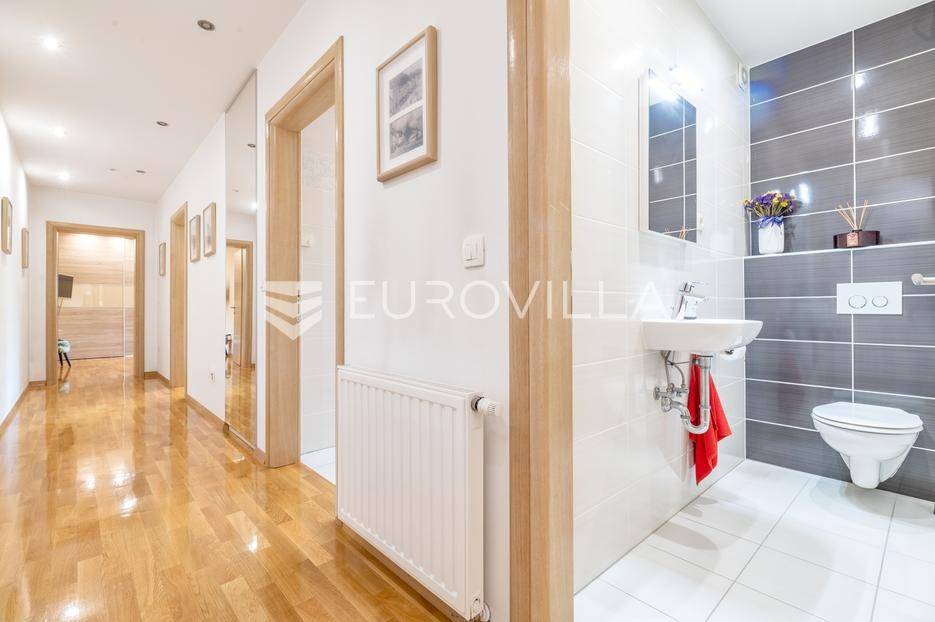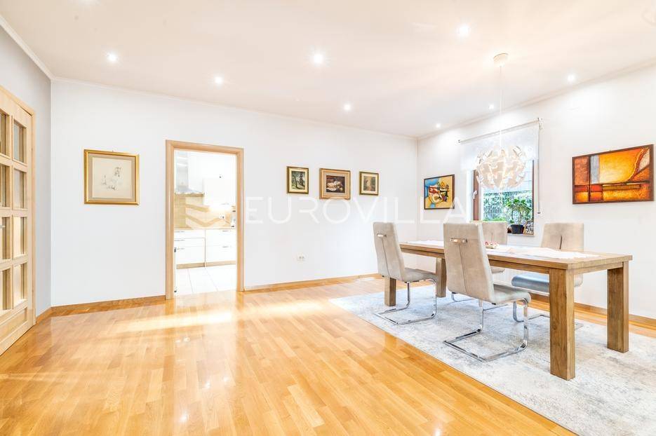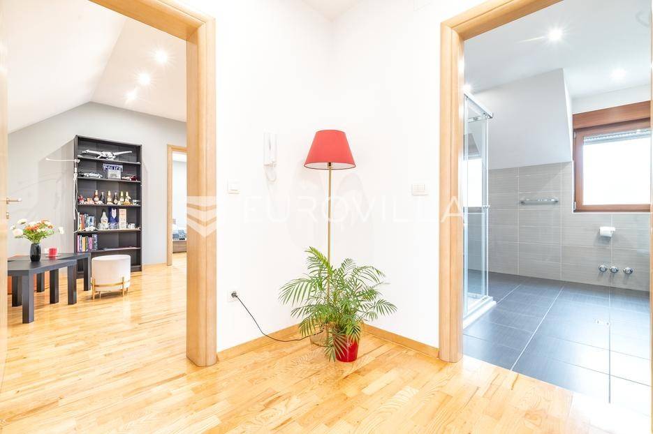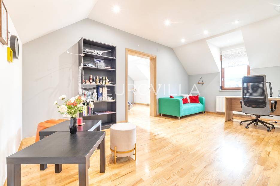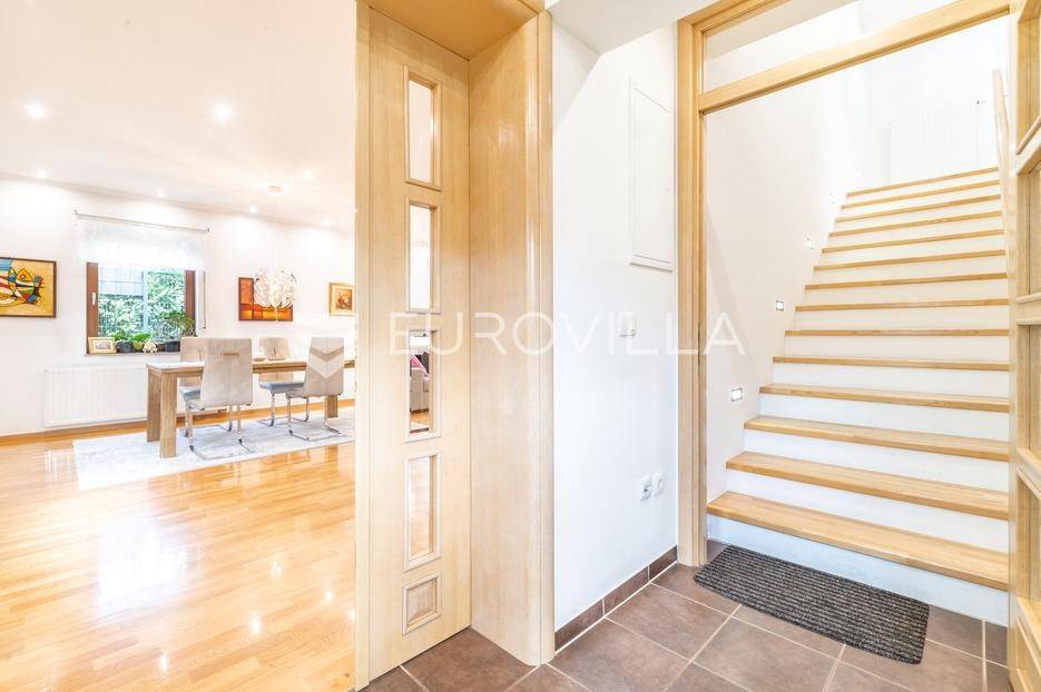 Na prodaju je atraktivna novogradnja površine 230 m2 na parceli od 400 m2, smještena u samom centru Samobora. Kuća je građena 2017. godine i od tada je sve potpuno novo uređeno i opremljeno. Energetski razred A+, etažno plinsko grijanje, kvalitetna gradnja i funkcionalan raspored čine ovu nekretninu idealnom za obiteljski život.Donja etaža:prostrani dnevni boravak open space koncepta s kuhinjom i blagovaonicomizlaz na uređeni vrt koji pruža privatnost i mirdvije spavaće sobe (mogućnost dječje sobe, radne sobe ili gostinjske sobe)kupaonica s modernom keramikom i sanitarijamaodvojeni toalet za gosteostava u kojoj se nalazi centralno plinsko grijanje i dodatni prostor za odlaganje i vešerajGornja etaža:dvije prostrane spavaće sobevelika obiteljska kupaonica s kadom i tušemhodnik koji povezuje sobe i omogućuje praktičnu raspodjelu prostoraveliki prostor koji je u visokoj roh bau fazi može biti dnevni kuhinja i blagavaona ili još dvije spavaće sobeDodatne karakteristike:četiri vanjska nenatkrivena parkirna mjestavisoki energetski standard (A+ certifikat)mirna ulica i potpuna privatnost, iako se kuća nalazi u samom srcu SamoboraLokacija: