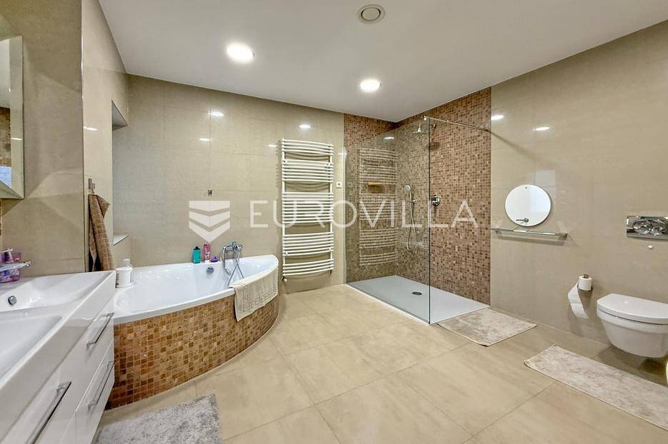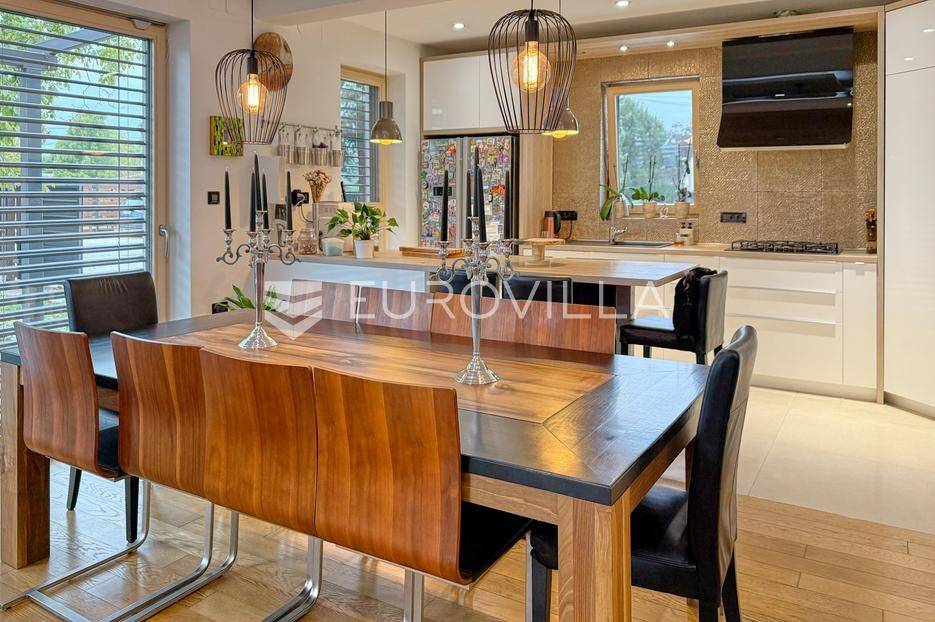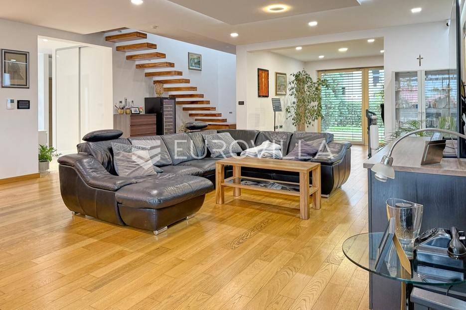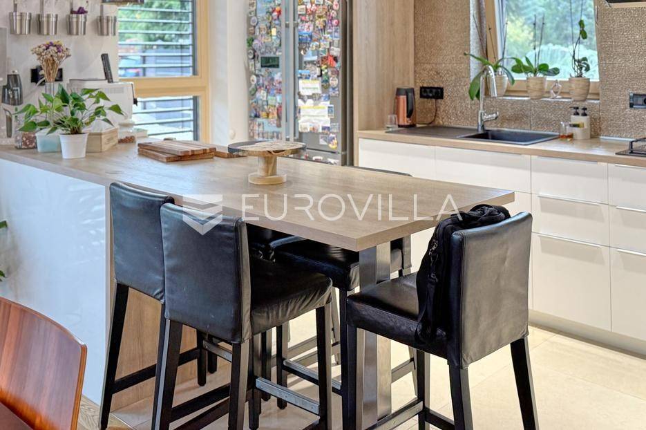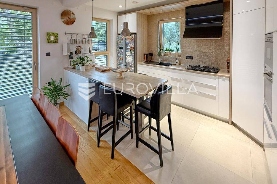 Ivanić Grad - moderna obiteljska kuća 245 m² na parceli 688 m²Prodaje se kvalitetno građena i suvremeno opremljena obiteljska kuća površine 245 m², na uređenoj parceli od 688 m², smještena u mirnoj ulici Ivanić Grada, svega 40 minuta od Zagreba.U prizemlju se nalazi dnevni boravak s blagovaonicom, kuhinja i radni kutak, dok su na katu dvije spavaće sobe s loggiom i glavna soba s garderobom i kupaonicom. Kuća ima podno grijanje, solarne kolektore, fotonaponsku elektranu 4,5 kW, centralni usisavač, kaminsku peć, ventilaciju s pripremom za rekuperaciju i wallbox punjač za električni automobil.Građena je od Porotherm blokova, protupotresno, s alu-drvo stolarijom, troslojnim staklima i aluminijskim krovom. Okućnica je ograđena i uređena, s natkrivenim drvarnikom, vrtom i vlastitim bunarom (moguć odabir gradske ili bunarske vode, s filtracijom i omekšivačem).Instalacije za smart home, optički internet, videonadzor i alarm su pripremljene. Idealna kuća za miran obiteljski život, uz vrhunsku opremu i blizinu svih sadržaja.Za više informacija i razgled, slobodno se javite.
