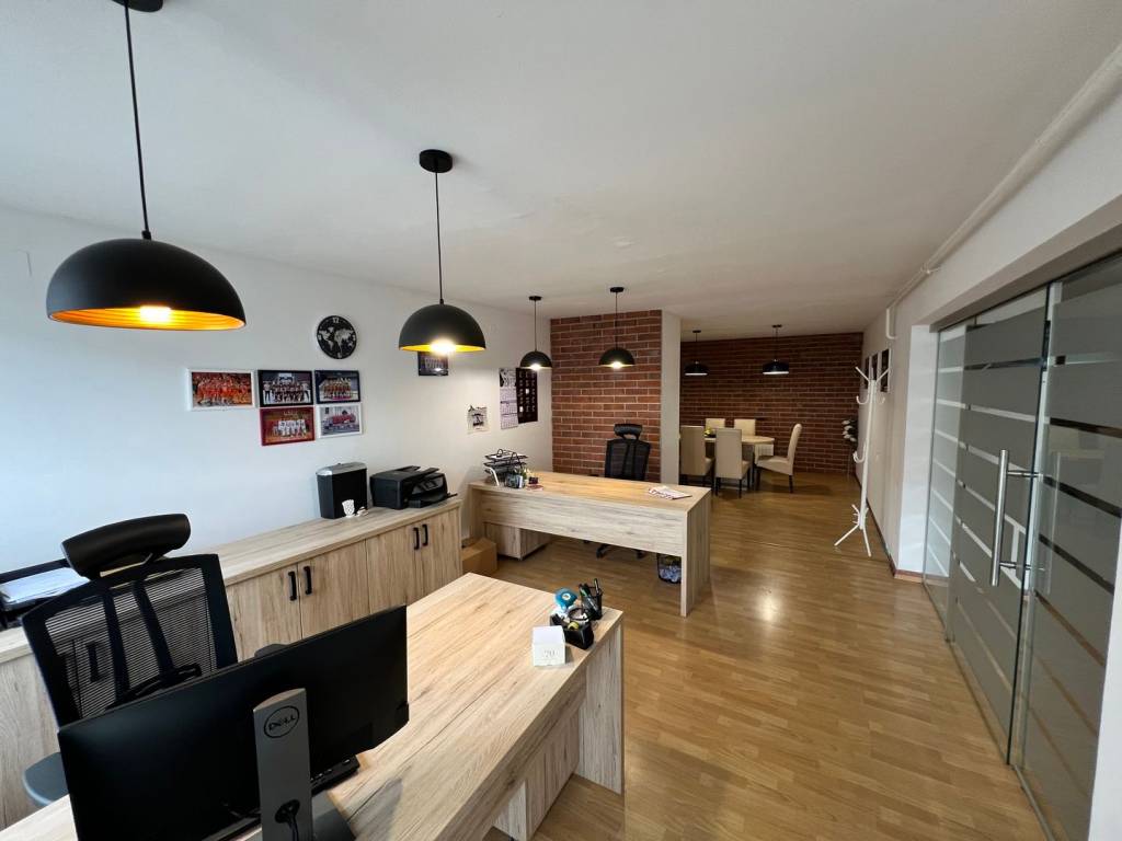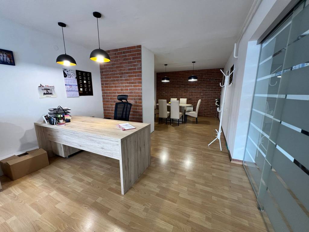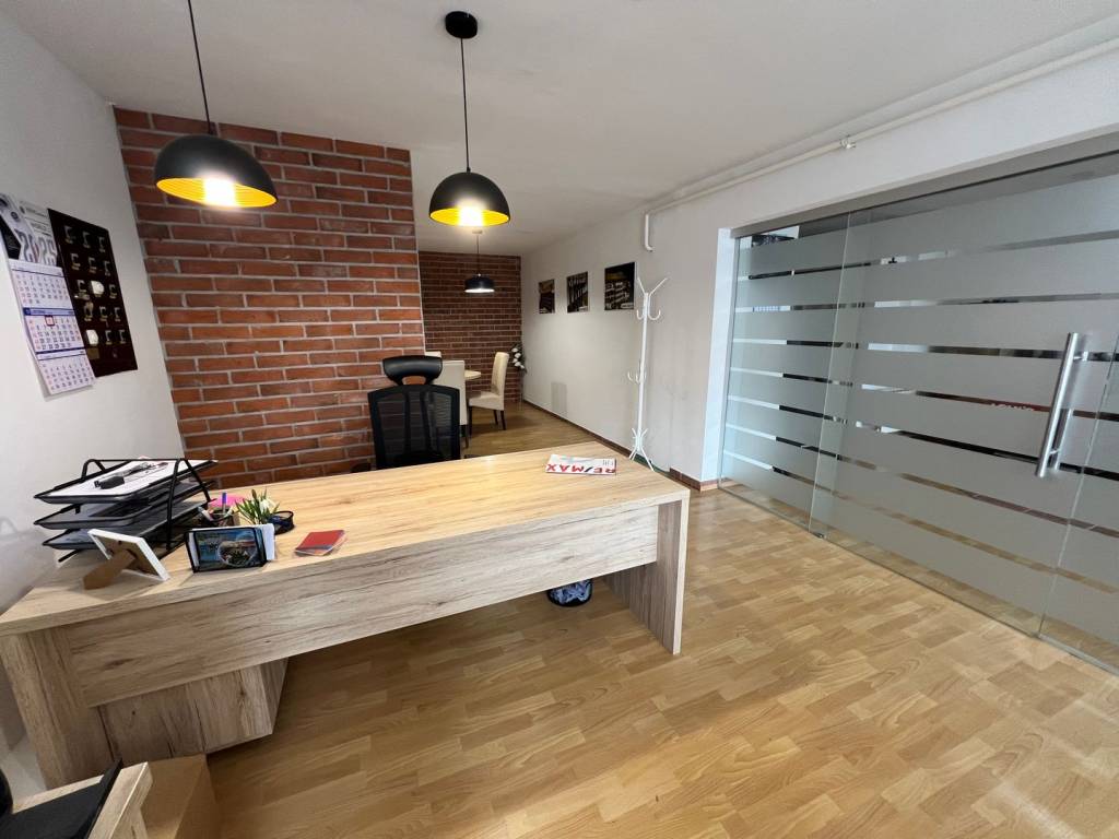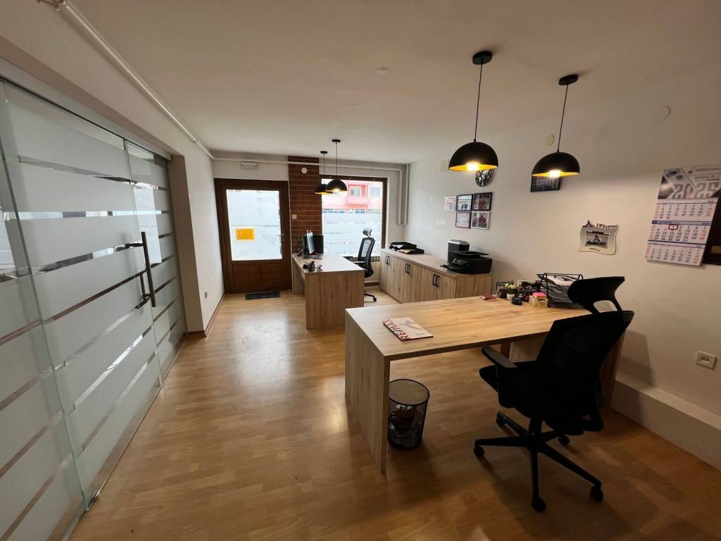 Die Immobilie ist in Privatbesitz und eignet sich für verschiedene Tätigkeiten – von Büros bis hin zu kleineren Handwerksbetrieben und Dienstleistungsunternehmen. Sie ist nach Westen ausgerichtet und verfügt dank einer großen Glasfront an der Vorderseite über viel natürliches Licht.