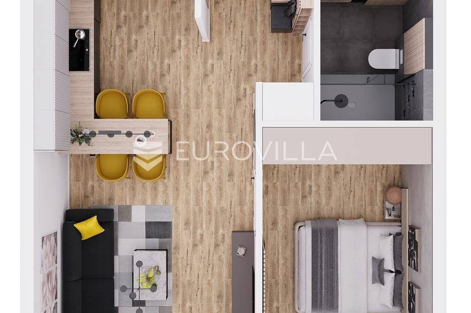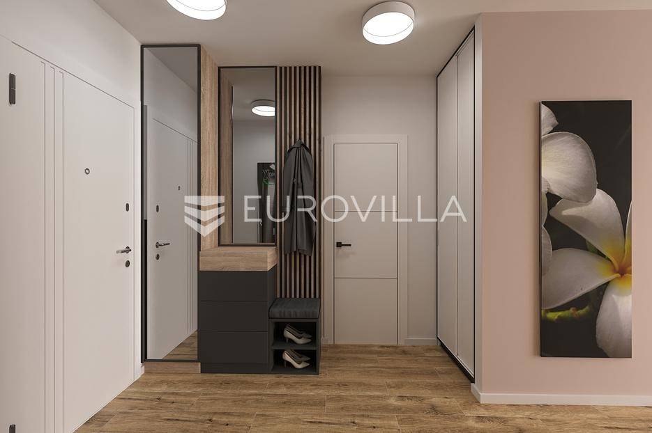 Smješteni izvan gradske vreve, ali odlično povezani s centrom Zagreba (vlak 14 min, automobil 20 min), ovi stanovi nude udobnost i mir, uz brojne sadržaje idealne za obiteljski život - dječja igrališta, veliki park u izgradnji i zelene površine za šetnje i rekreaciju.Dvosoban stan S16 zatvorene površine 44m2 kojem dodatno pripada balkon površine 7,20m2. Sastoji se od ulaznog prostora, komforne kupaonice,open space kuhinje i blagovaone s dnevnim boravkom i izlazom na balkon te master spavaće sobe.U prodaji su moderni stanovi u sklopu novog stambenog projekta koji objedinjuje mirnu prirodnu okolinu i vrhunsku funkcionalnost suvremene arhitekture. Ako tražite dom koji nudi privatnost, kvalitetu, sigurnost i izvrsnu povezanost s gradom - ovo je pravo mjesto za vas!Planirano useljenje: lipanj 2027.Arhitektura i gradnja:Konstrukcija: armirano betonski nosivi zidovi debljine 20 cm, armirano betonske međukatne monolitne ploče debljine 20 cmPregradni zidovi: prema hodniku Silka blokovi 17,5 cm + obostrano mineralna vuna i dvostruke gipskartonske ploče (povećana toplinska i zvučna izolacija)pregradni zidovi između stanova Silka blokovi 11,5 cm + obostrano mineralna vuna i dvostruke gipskartonske ploče (povećana zvučna izolacija)pregradni zidovi unutar stanova dvostruke gipskartonske ploče na metalnoj potkonstrukciji s ispunom od mineralne vune, ukupne debljine 10 i 15 cm (povećana zvučna izolacija)Fasada: „ETICS“ fasadni sustav s pločama ekspandiranog polistirena debljine 15 cm ili pločama mineralne vune debljine 15 cm, vanjski zidovi završno obrađeni silikatnom fasadnom žbukom.Vanjska stolarija: PVC stijene s dvostrukim IZO ostakljenjem (1 Low E) i komarnicima, dimenzija „od poda do stropa“ (240+20 cm), u antracit boji izvana te u bijeloj boji iznutraDetalji: Aluminijske vanjske klupčice u boji stolarije te aluminijske električne rolete s toplinskom izolacijom.Komforno grijanje i klimatizacija:Grijanje: za grijanje prostora i za zagrijavanje potrošne tople vode koristit će se protočni kondenzacijski plinski bojler, grijanje izvedeno kao podno, čije se cijevi postavljaju unutar plivajućeg poda, u kupaonicama dodatno električne kupaonske ljestve, spojene na sustav podnog grijanja, s mogućnošću samostalnog reguliranja i korištenja.Hlađenje: hlađenje multi split inverterskim uređajima čije su vanjske jedinice smještene na krovu zgrade, svaki stan opremljen jednom unutarnjom klima jedinicom.Interijer - spoj elegancije i funkcionalnosti:svijetla visina 260 cm (od gotovog poda do stropa)ulazna vrata protuprovalna i vatrootpornaunutarnja stolarija građevinske visine 220 cm, svijetle visine 215 cmvišeslojni parket 1. klase u hodniku, dnevnom boravku, blagovaonici i sobamakeramičke pločice 1. klase u sanitarijama, kuhinjama, balkonima i terasamavisokokvalitetna sanitarna oprematuš kade u ravnini s gotovim podom sa staklenim tuš kabinamaležeće kade sa staklenom pregradomkonzolni umivaonici za wc-ekupaonski komplet za kupaonice (umivaonik s donjim ormarićem, ogledalom i rasvjetom)ugradbeni vodokotlić s konzolnom wc školjkomzidne i podne keramičke pločice 1. klase, max. dimenzija 120x60, spojene „gerung“ sustavomNapomena: Kupnja garažnog ili vanjskog parkirnog mjesta i spremišta obavezna je.Za sve dodatne informacije stojimo Vam na raspolaganju.